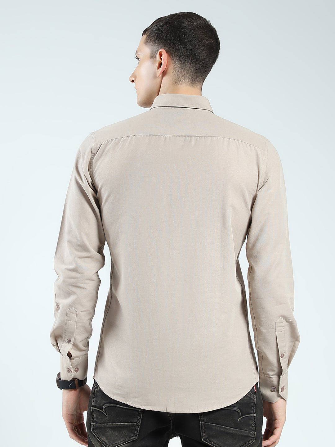 Men Beige Solid Collar Full Sleeve Shirt
