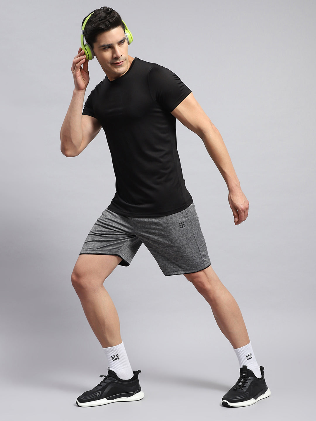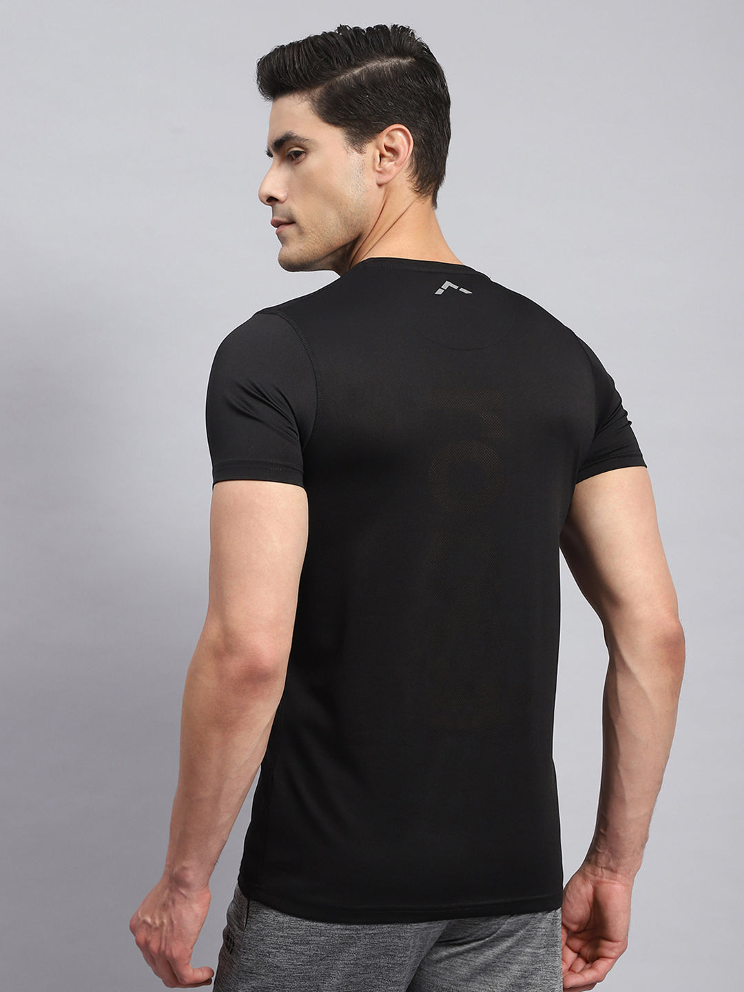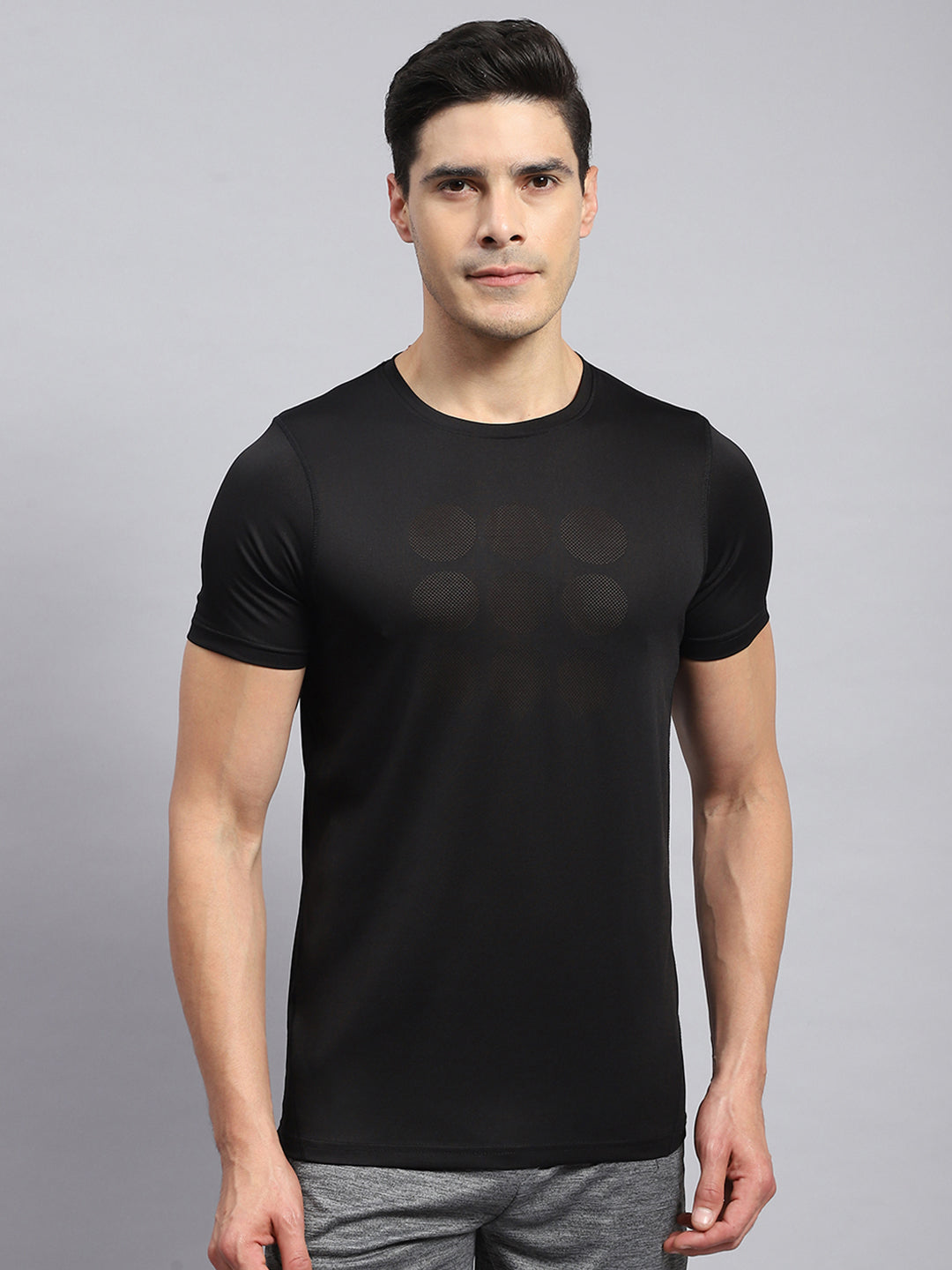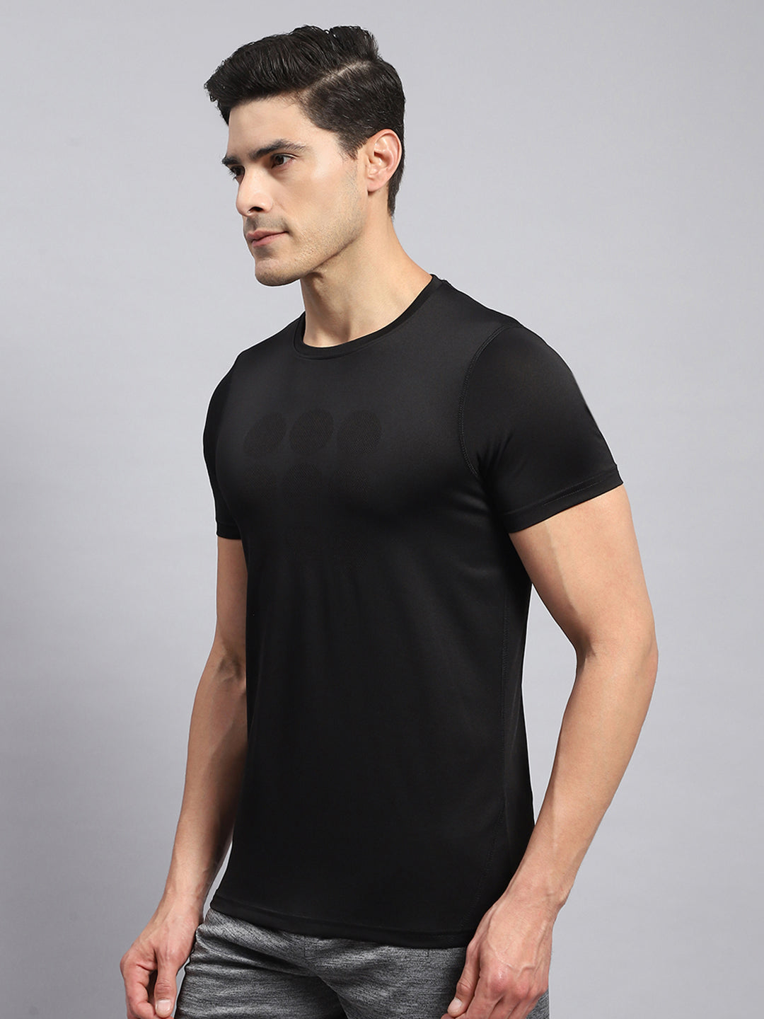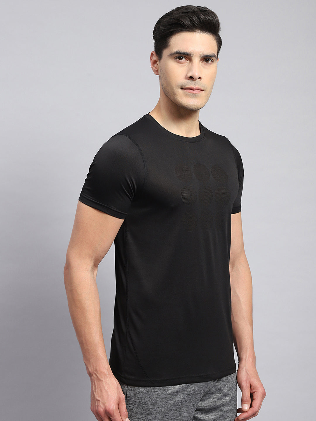 Men Black Self Design Round Neck Half Sleeve T-Shirt