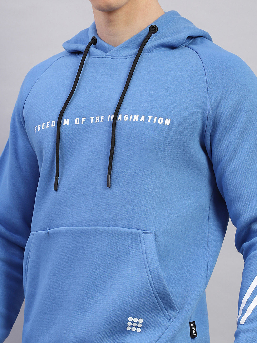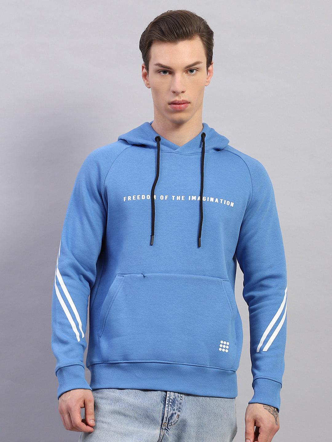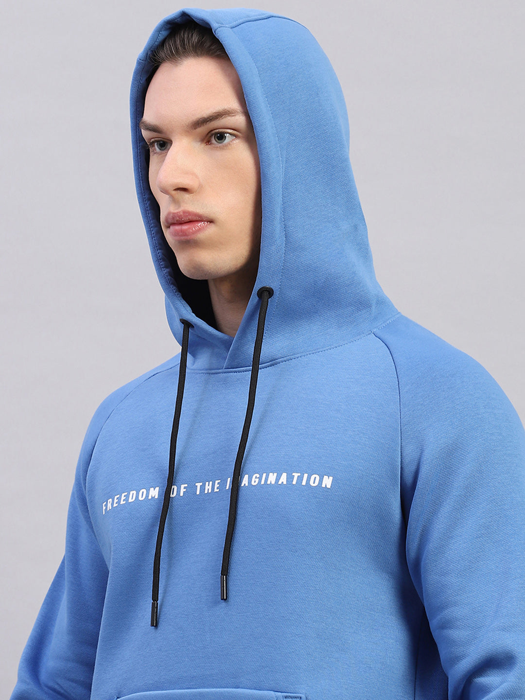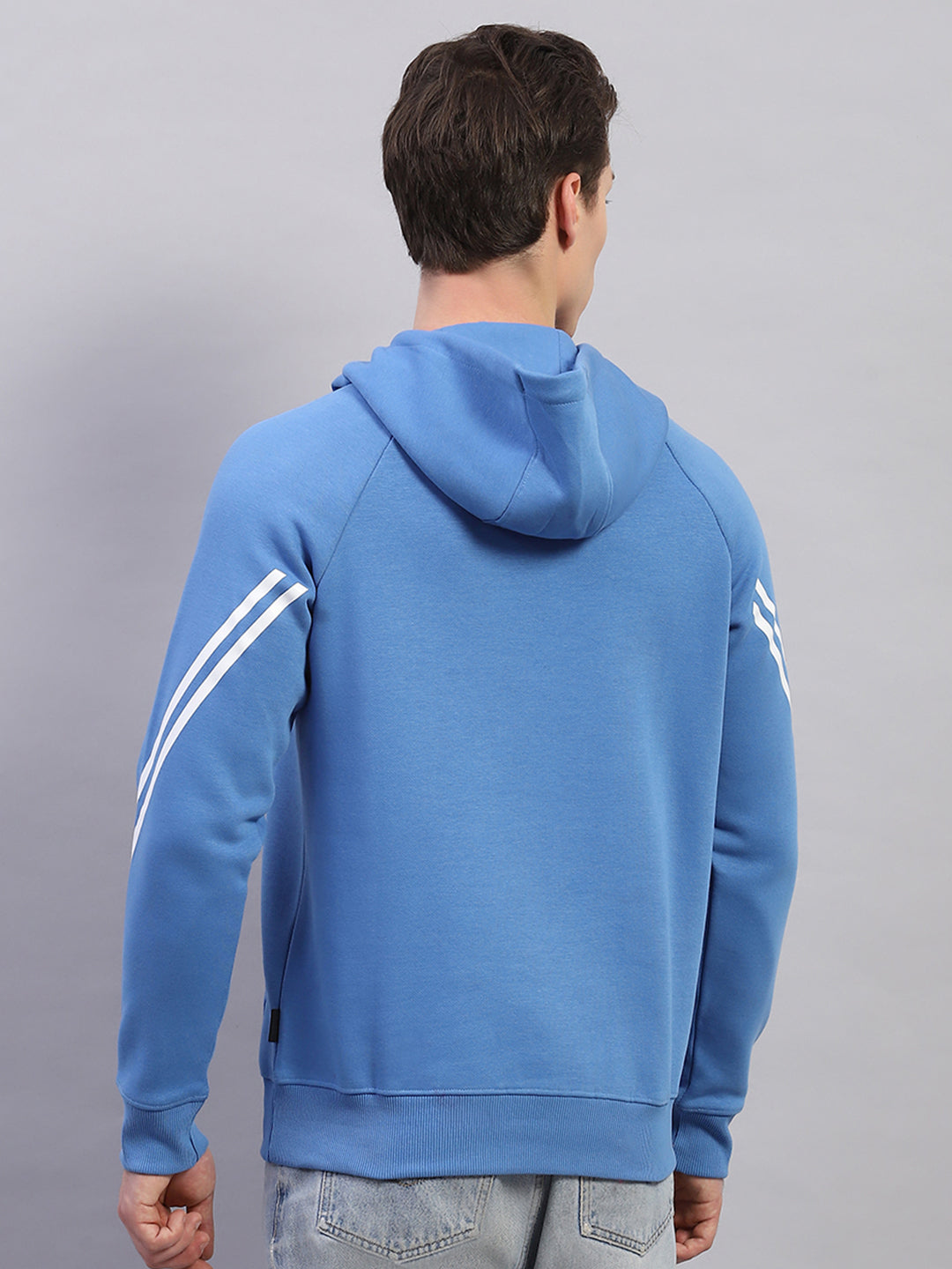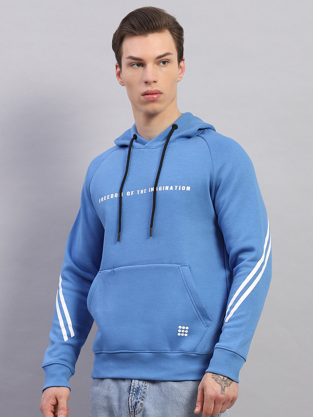 Men Blue Printed Hooded Full Sleeve Sweatshirt