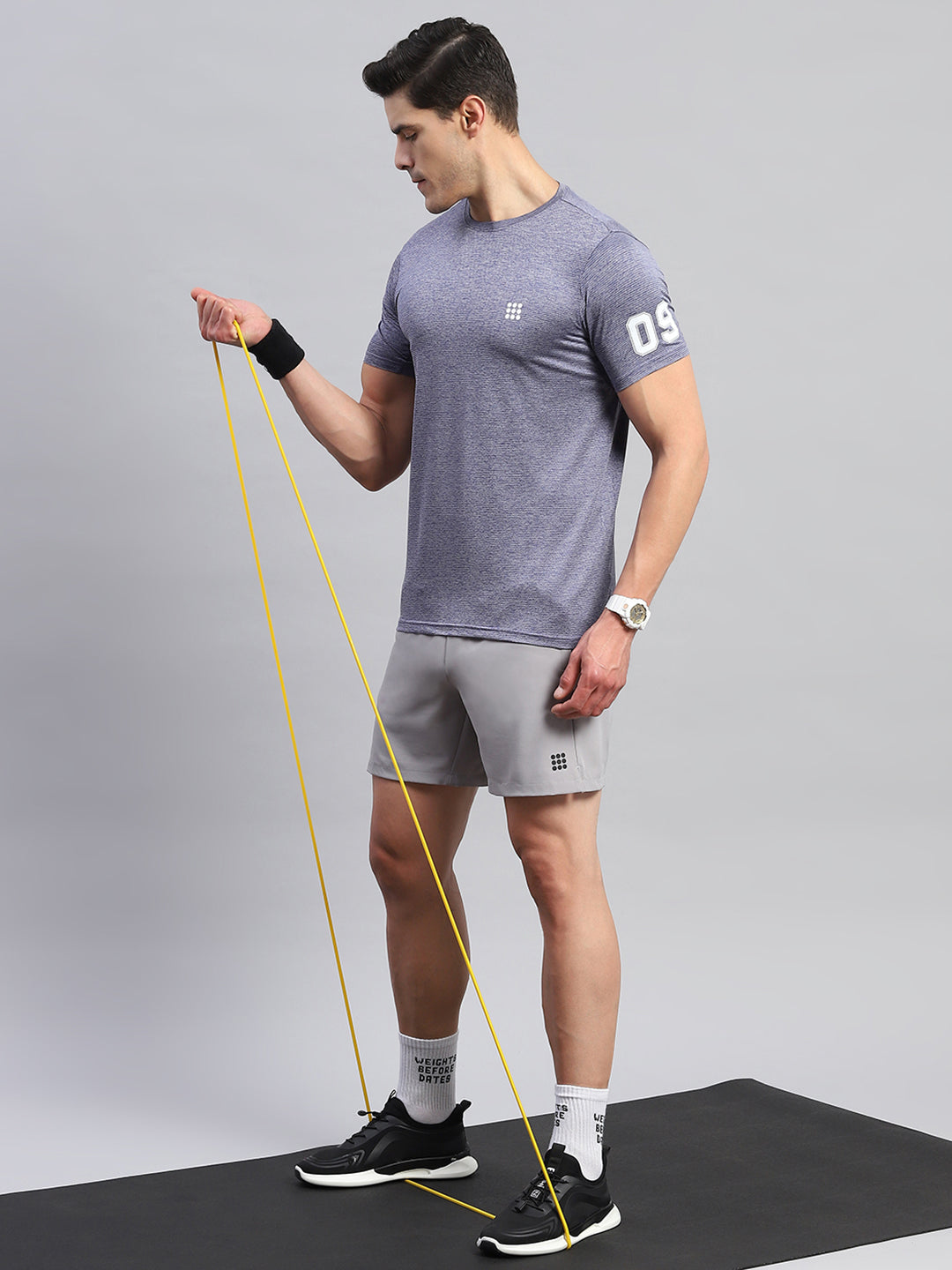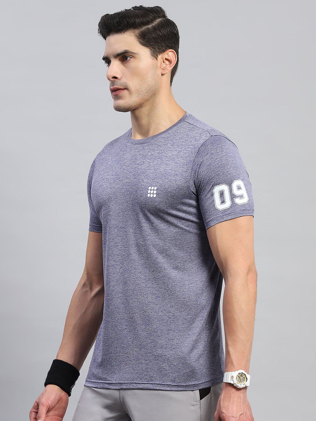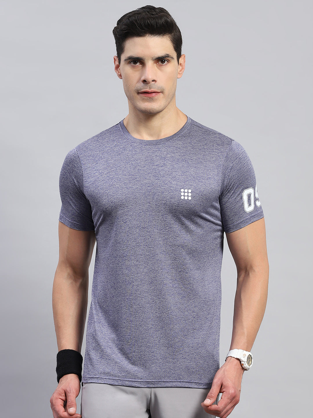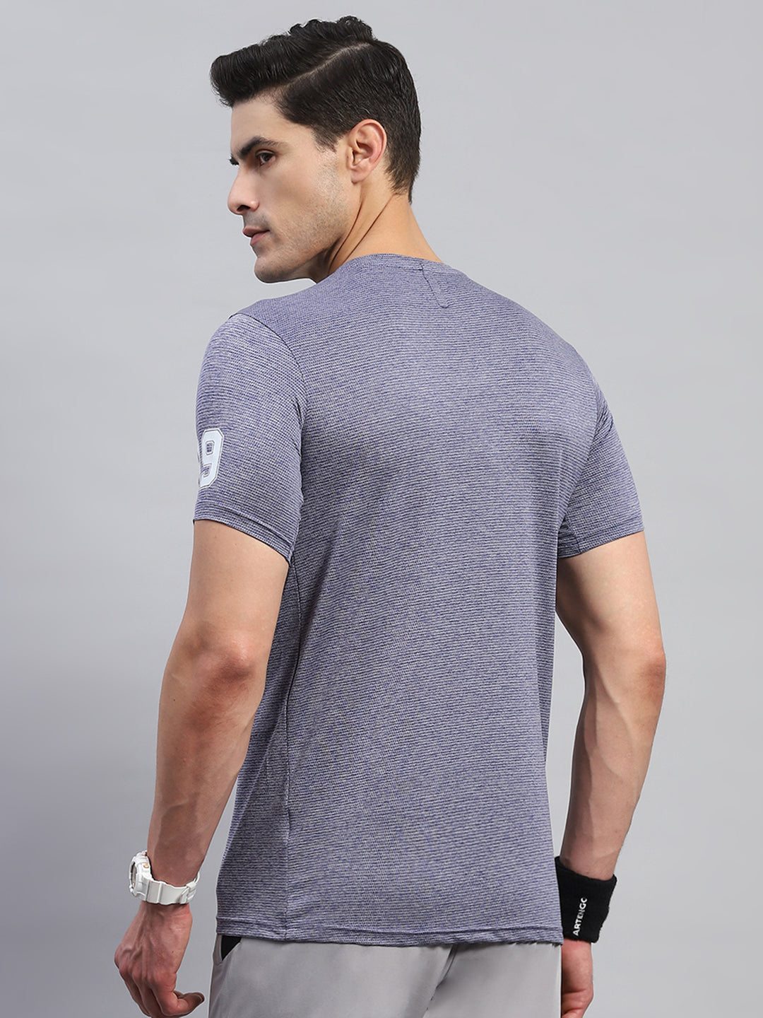 Men Blue Self Design Round Neck Half Sleeve T-Shirt