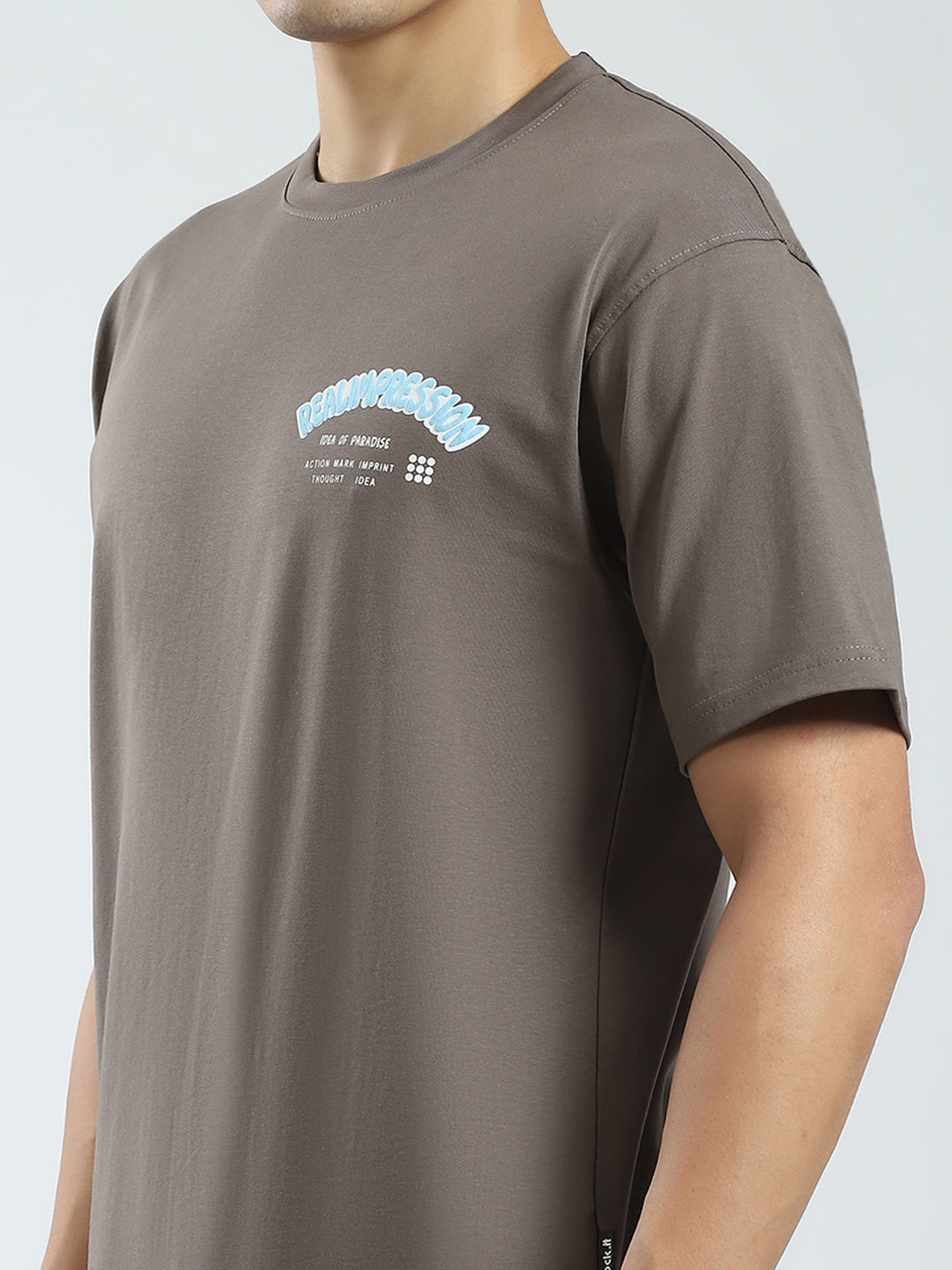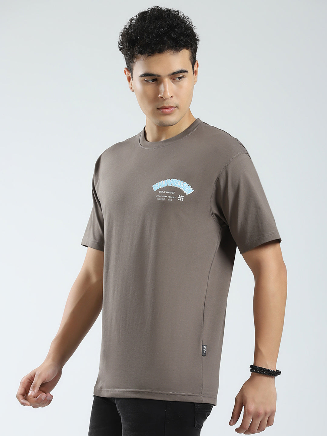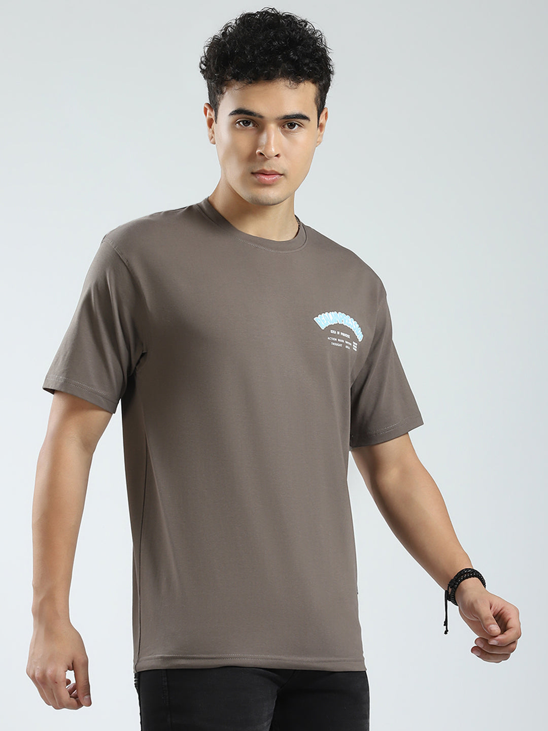 Men Brown Printed Round Neck Half Sleeve T-Shirt