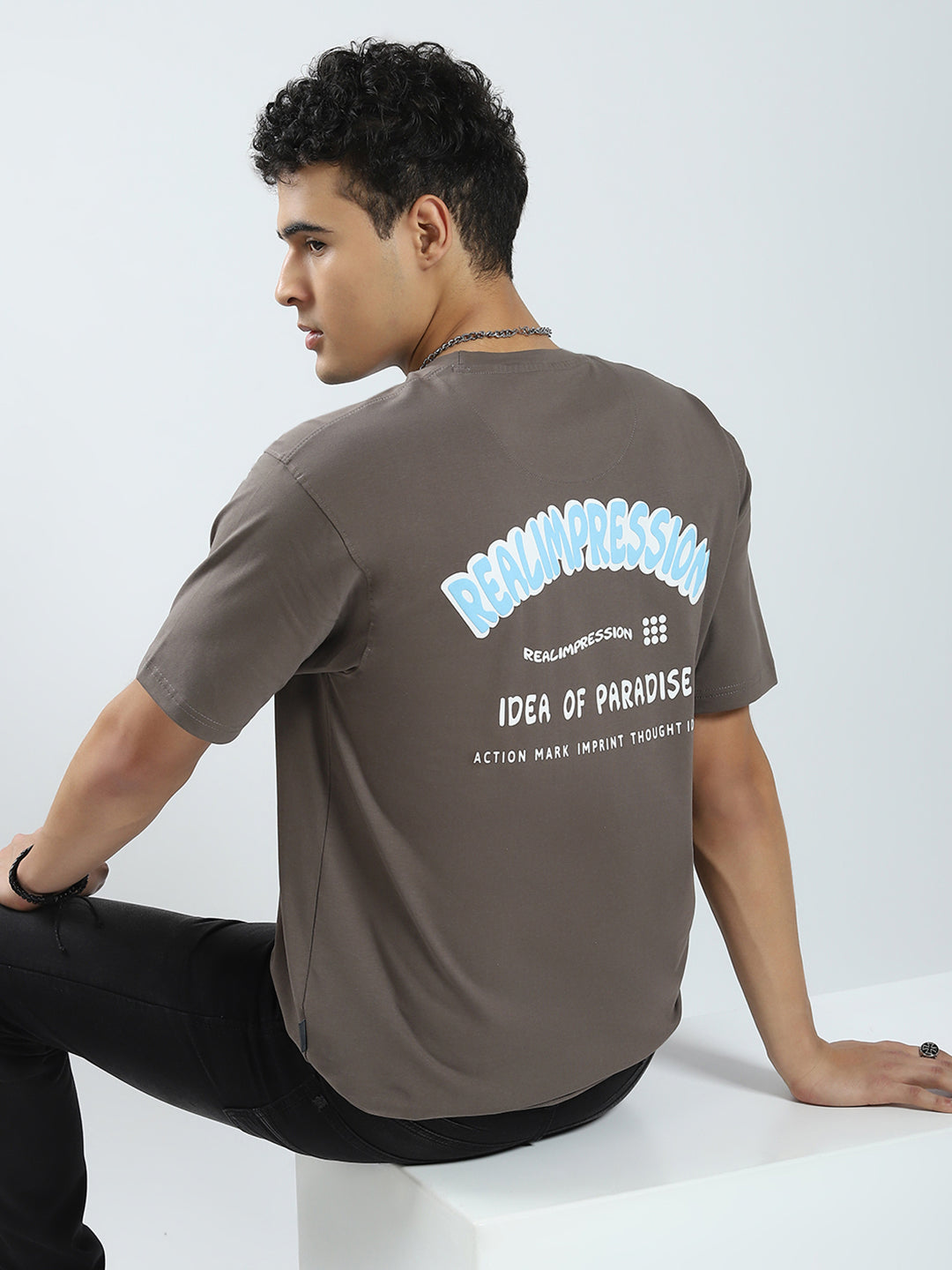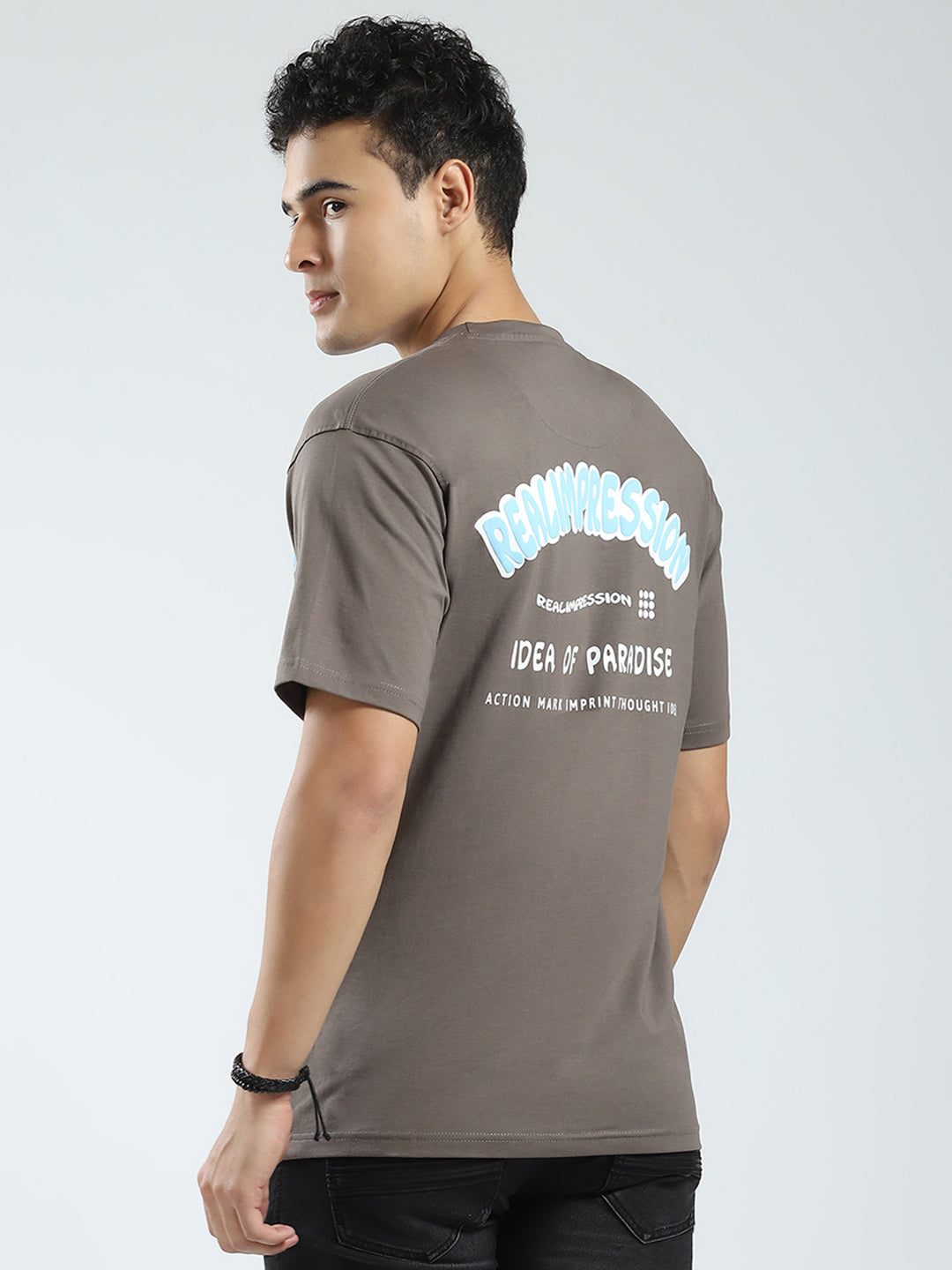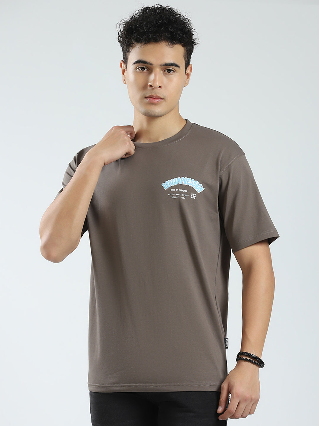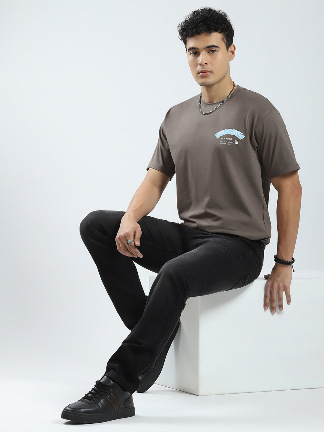Men Brown Printed Round Neck Half Sleeve T-Shirt
