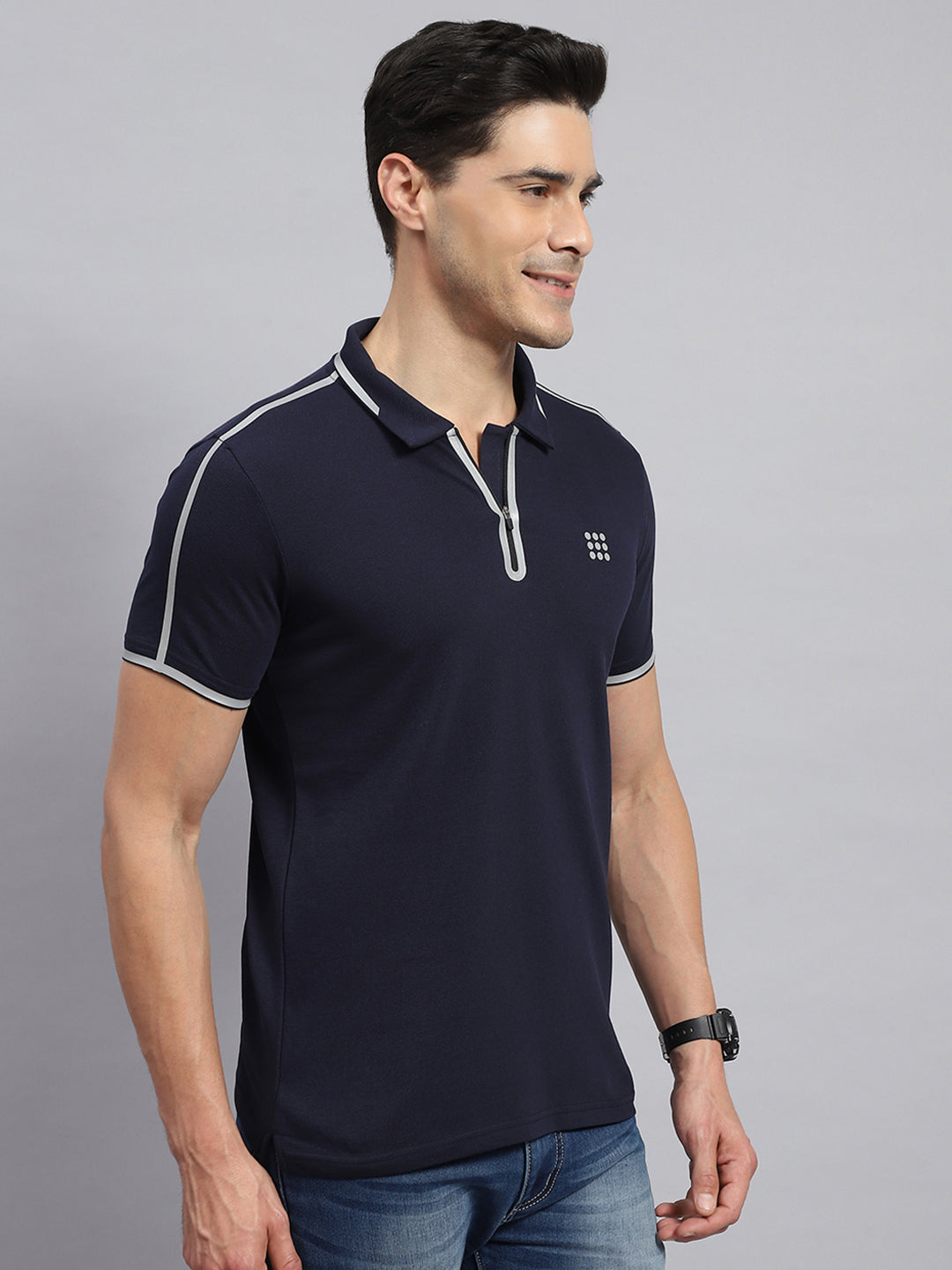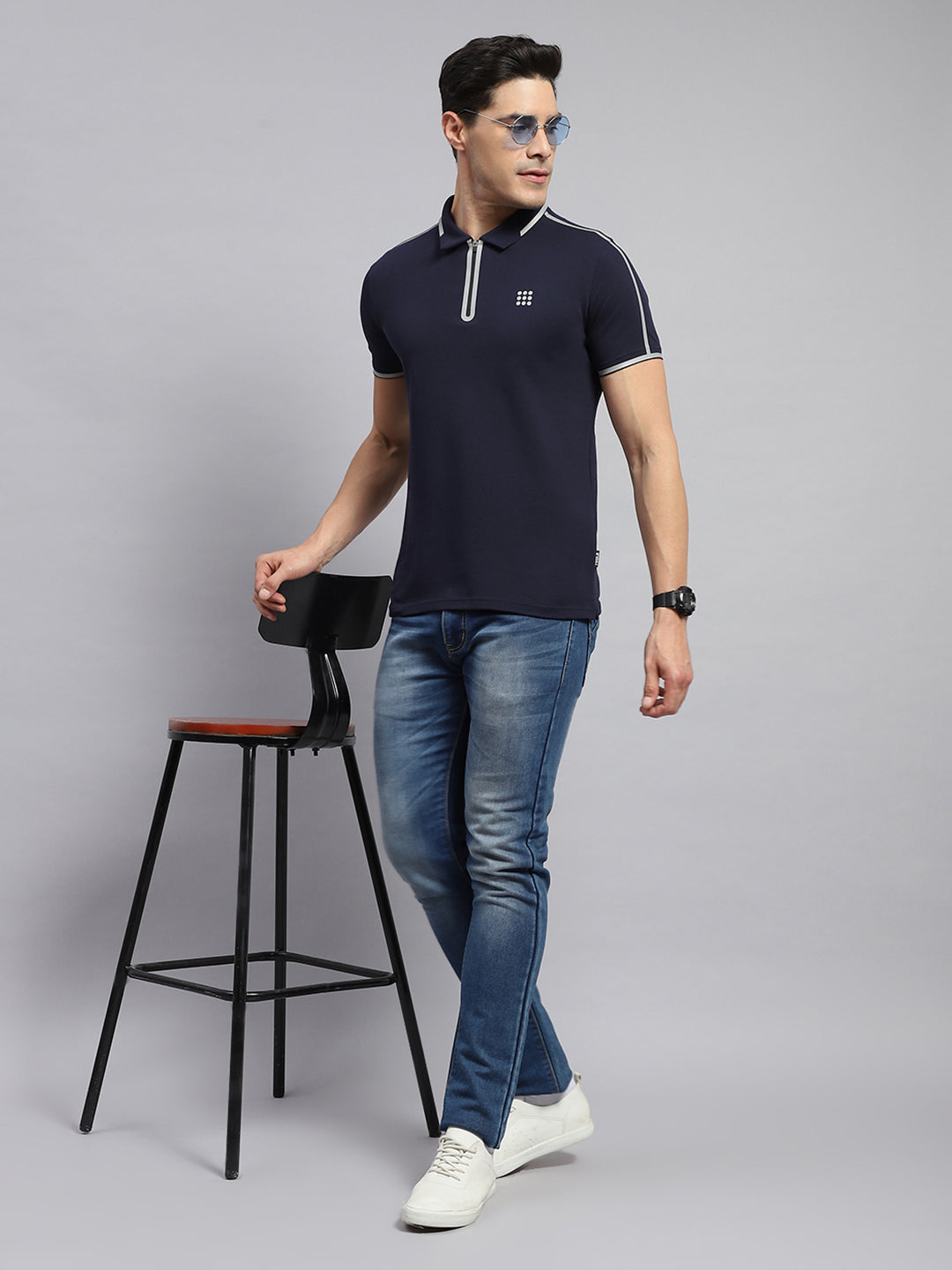 Men Navy Blue Solid Collar Half Sleeve T-Shirt