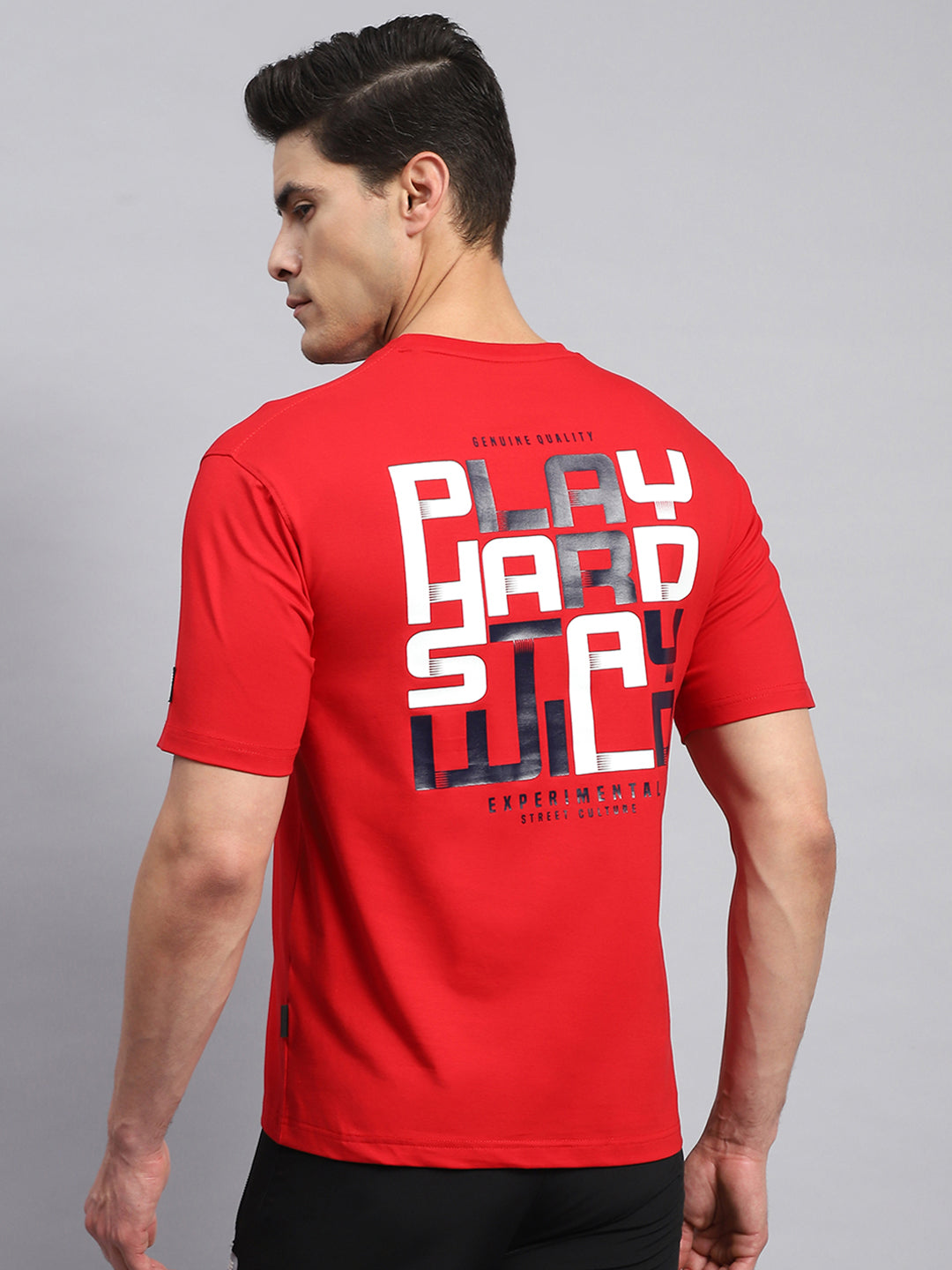 Men Red Printed Round Neck Half Sleeve T-Shirt