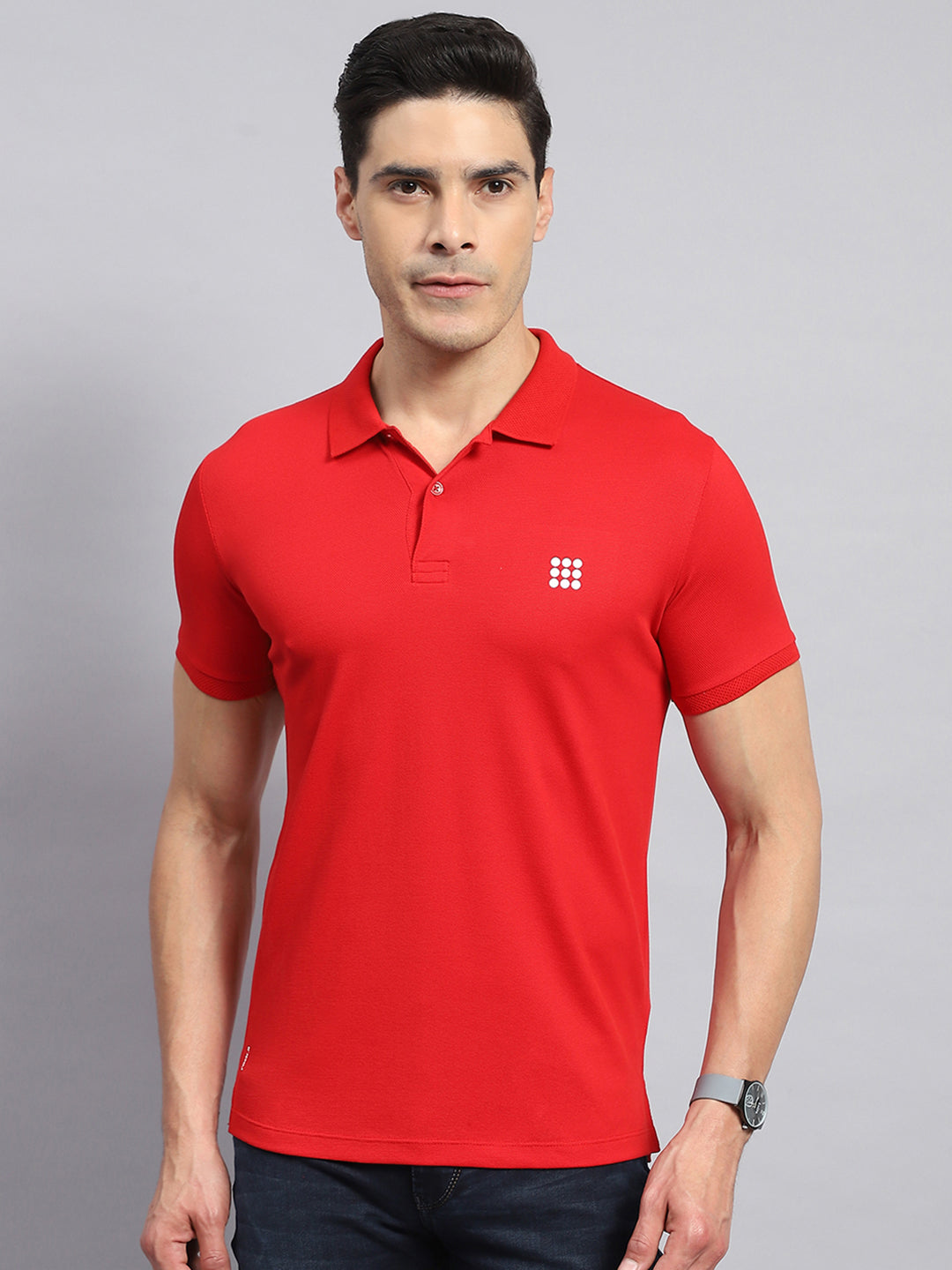 Men Navy Blue Solid Collar Half Sleeve T-Shirt