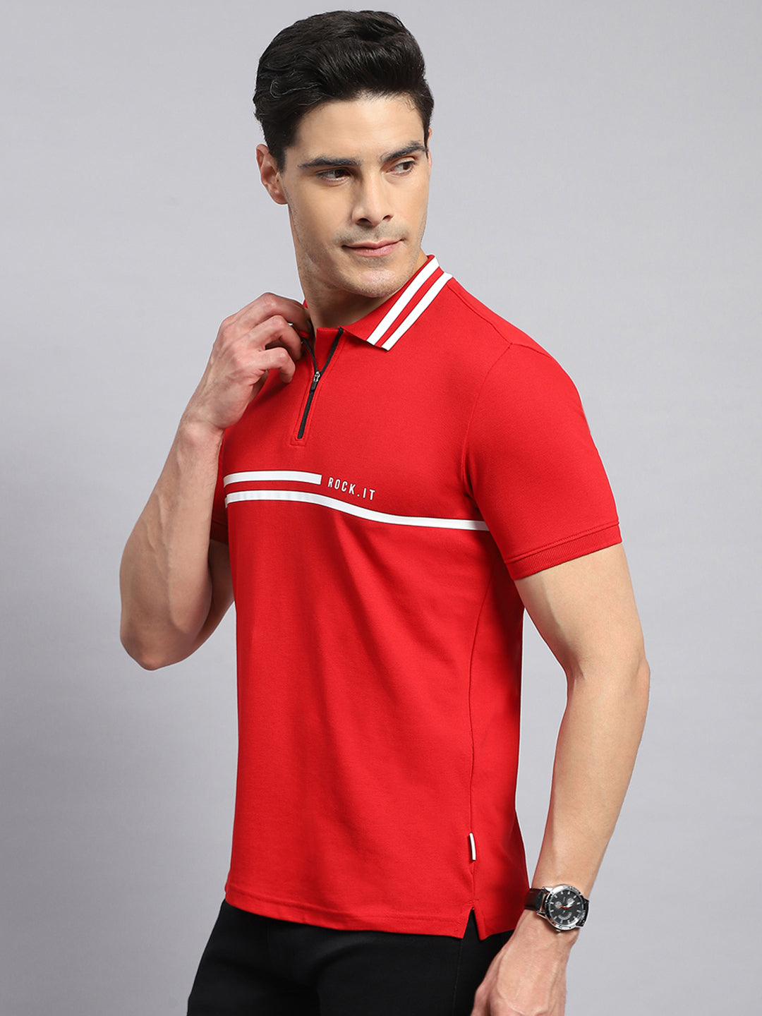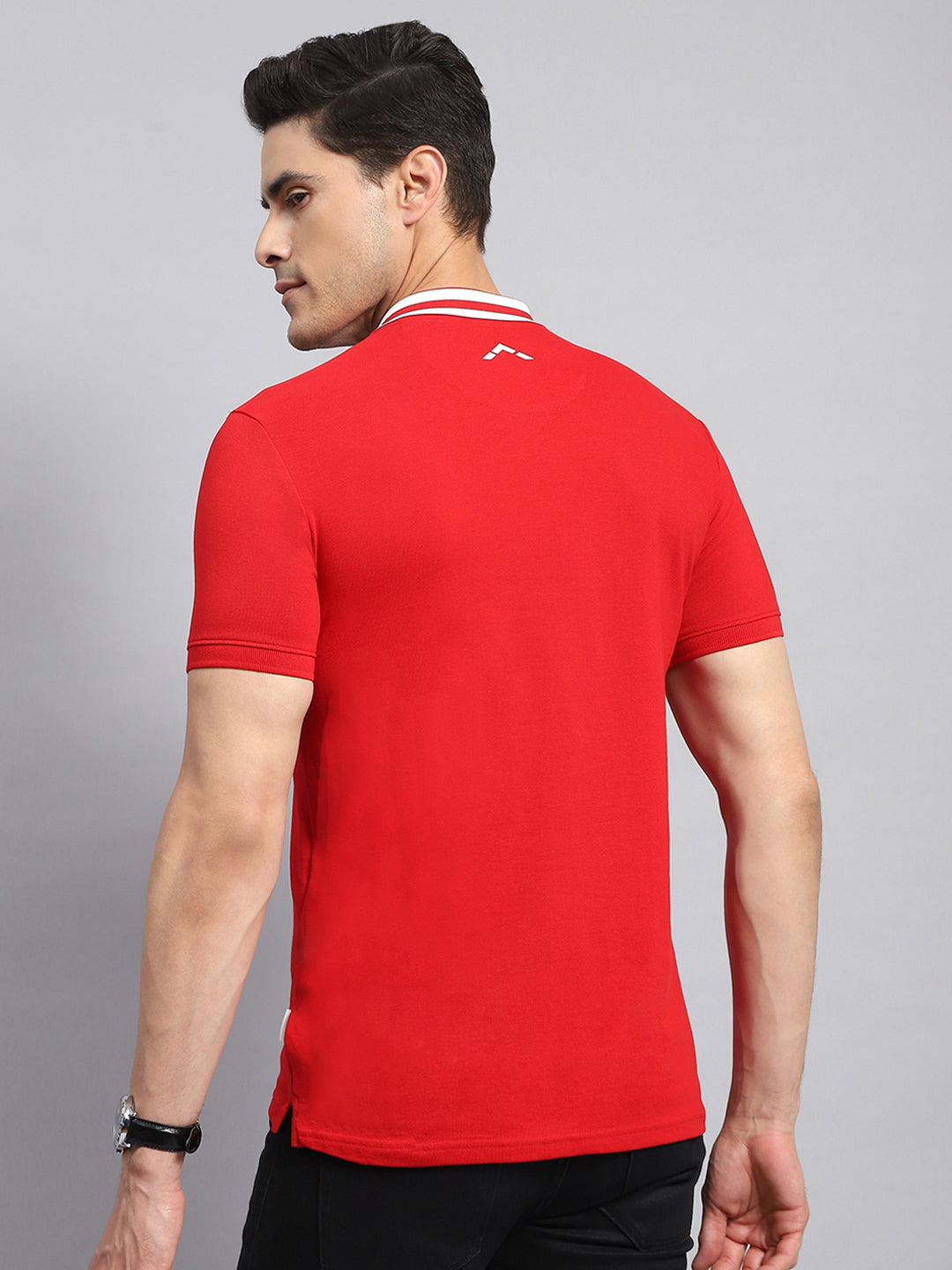 Men Red Solid Collar Half Sleeve T-Shirt
