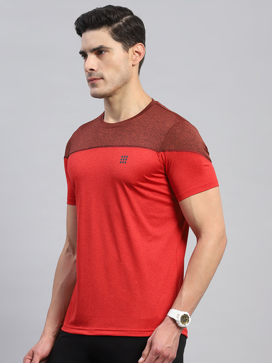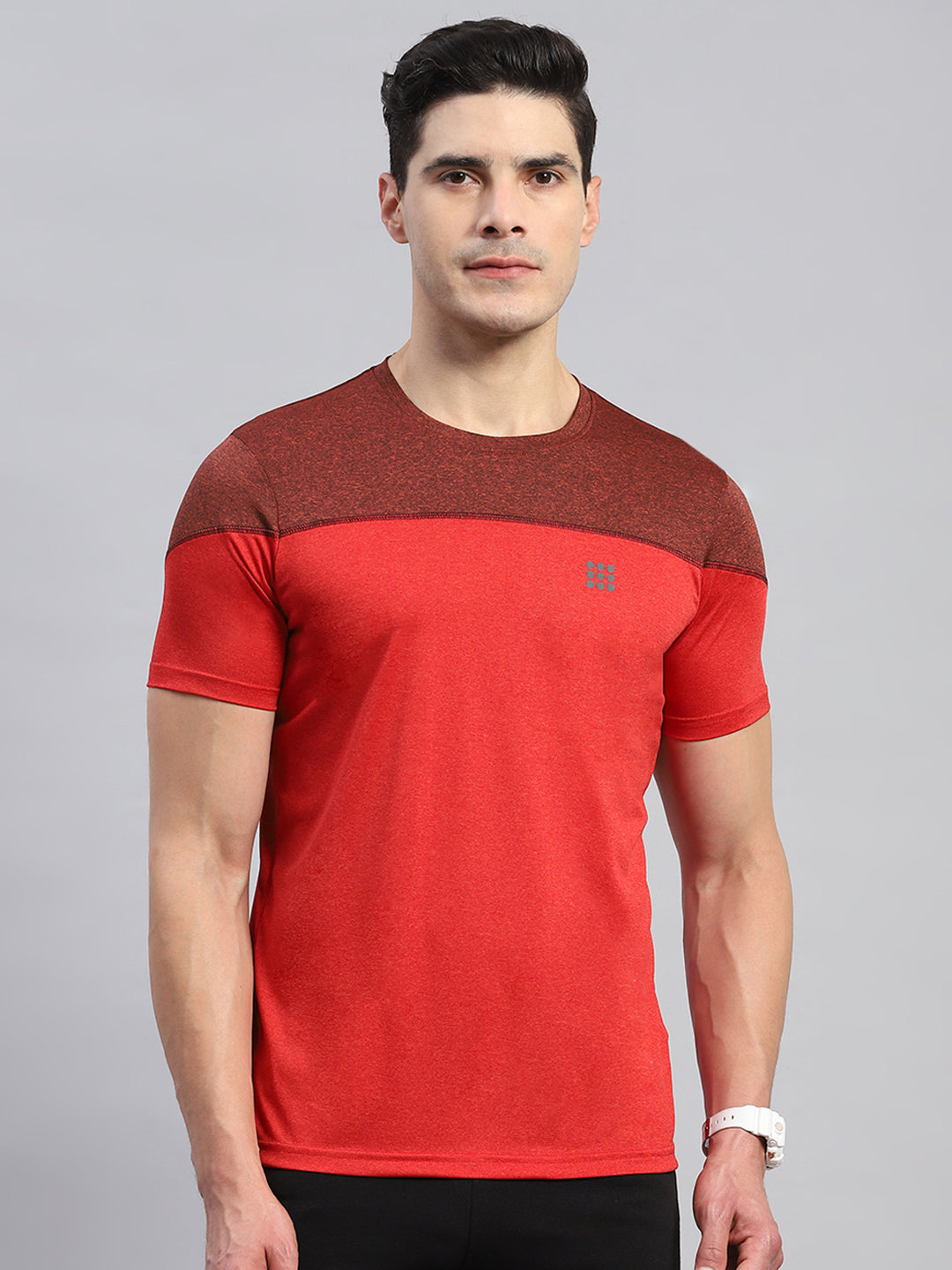 Men Red Solid Round Neck Half Sleeve T-Shirt