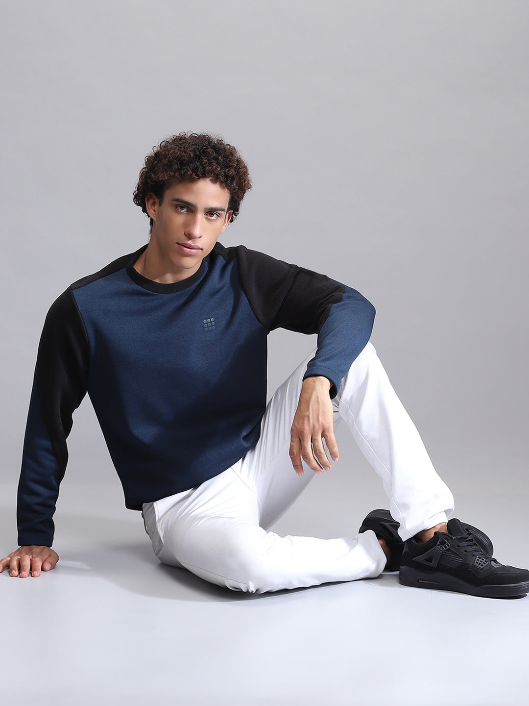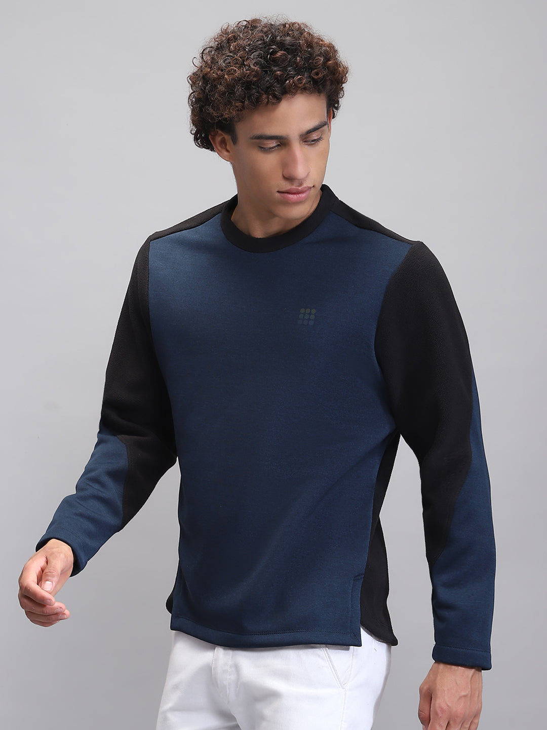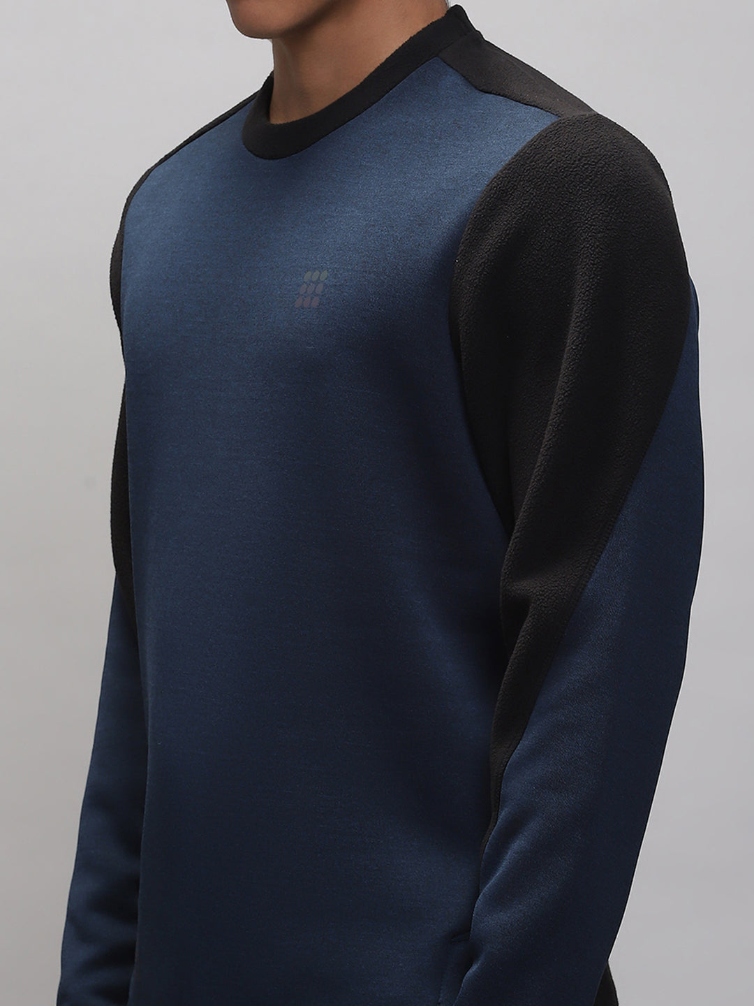 Men Teal Blue Solid Round Neck Full Sleeve Sweatshirt