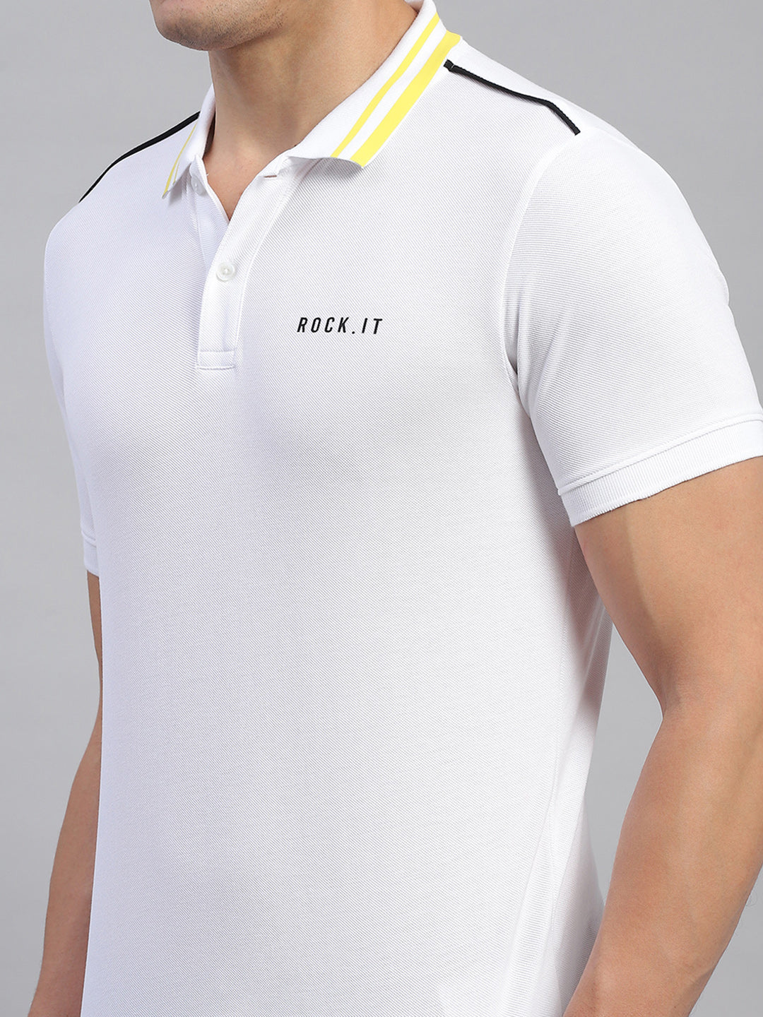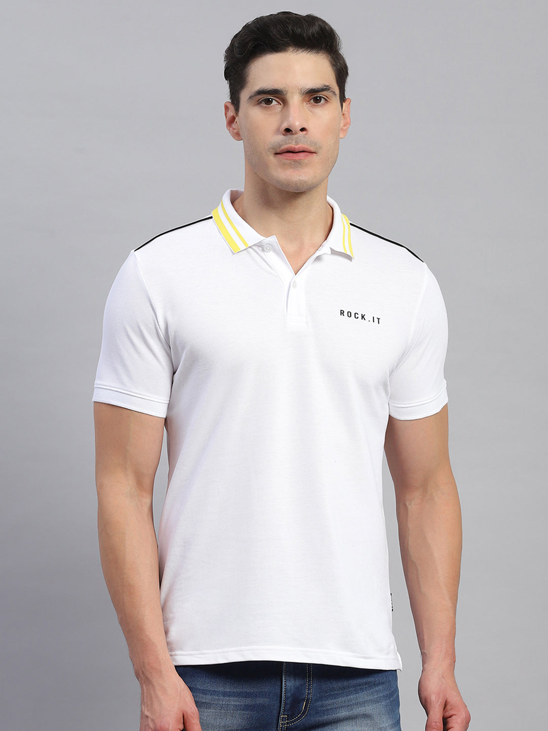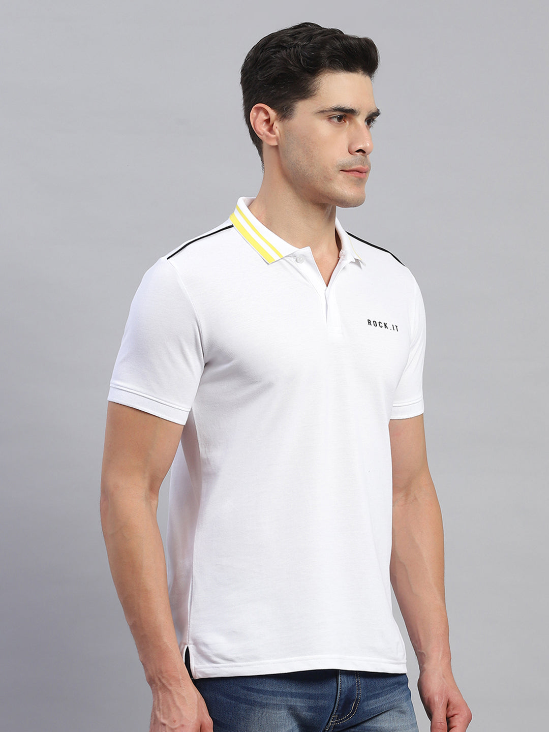 Men White Solid Collar Half Sleeve T-Shirt