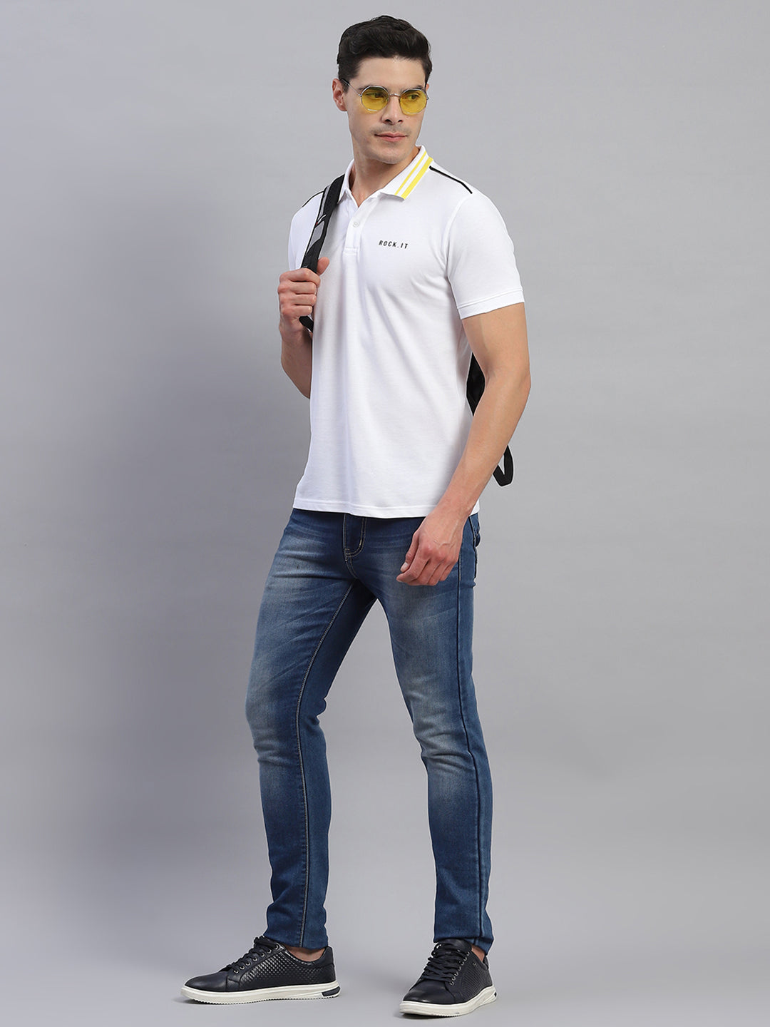Men White Printed Collar Half Sleeve T-Shirt