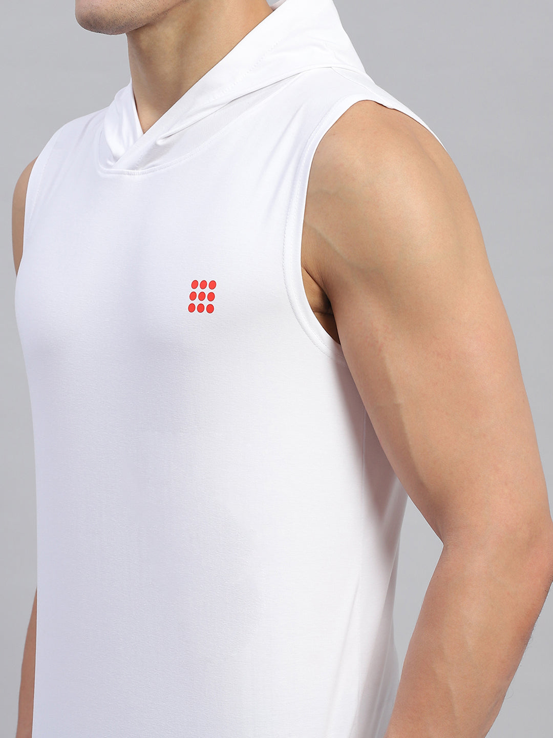 Men White Printed Round Neck Full Sleeve Winter T-Shirt