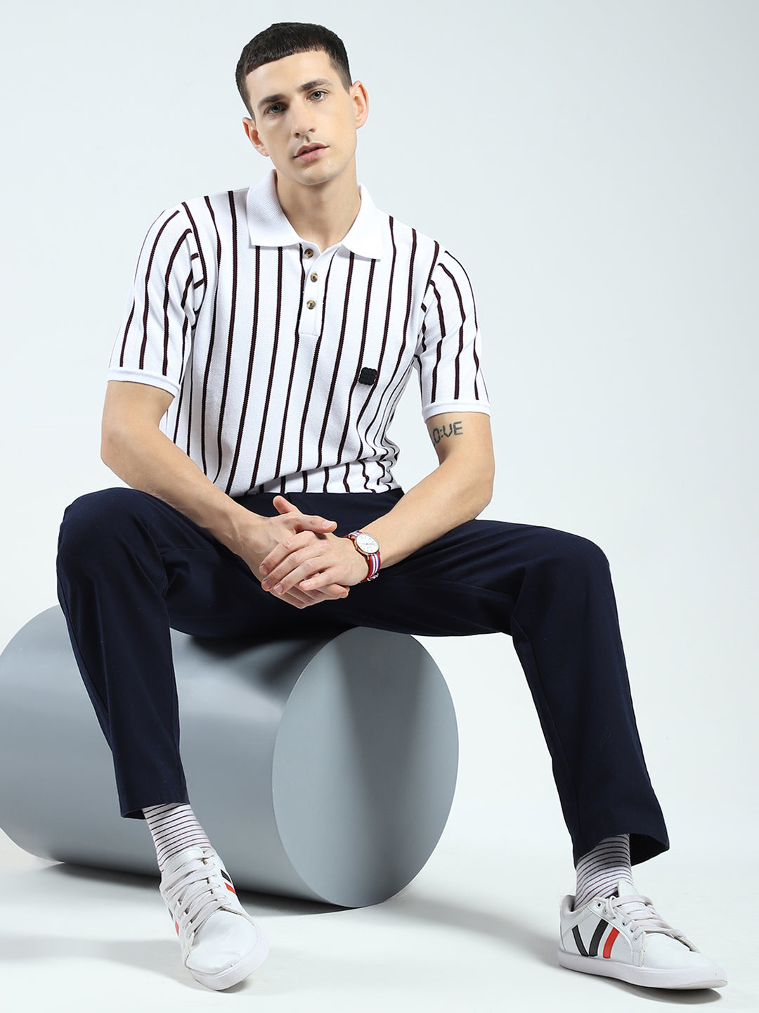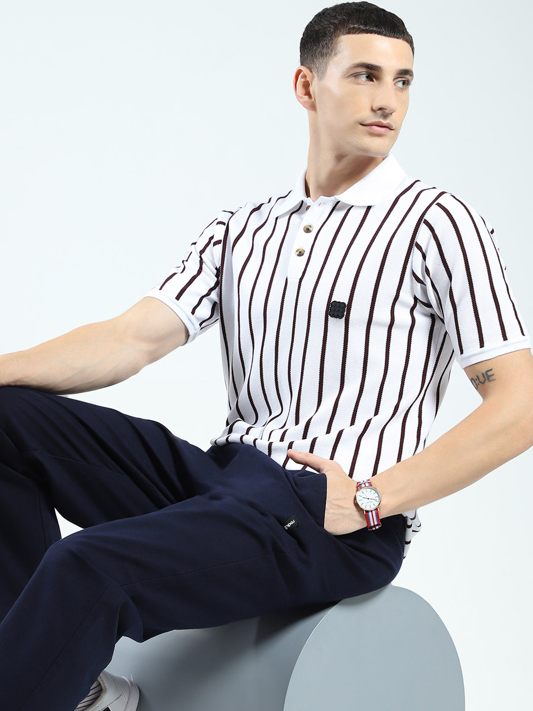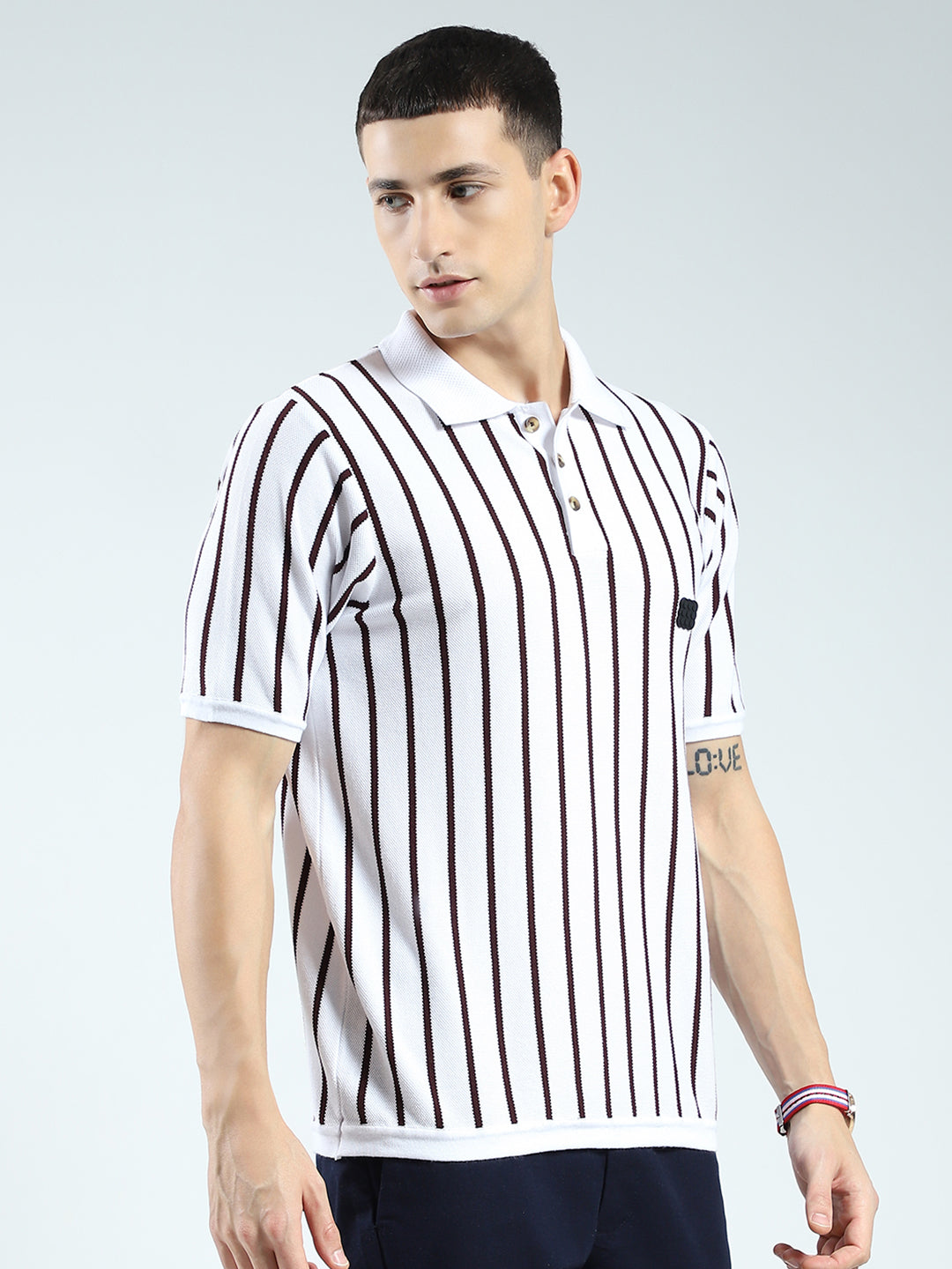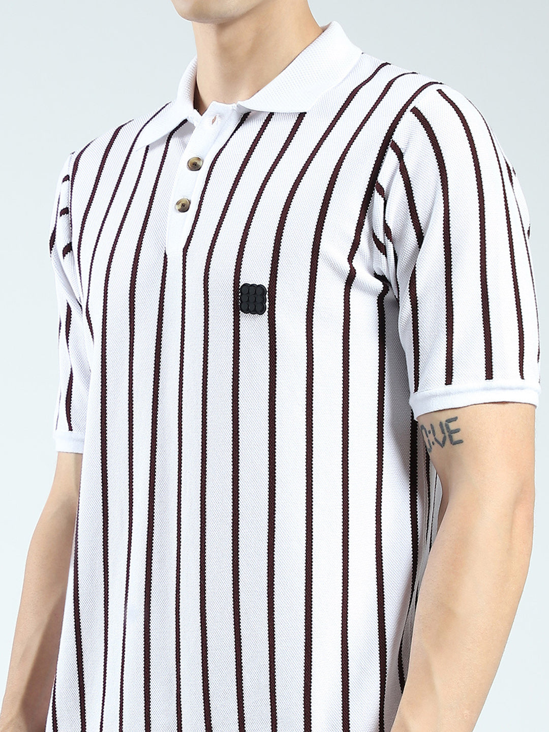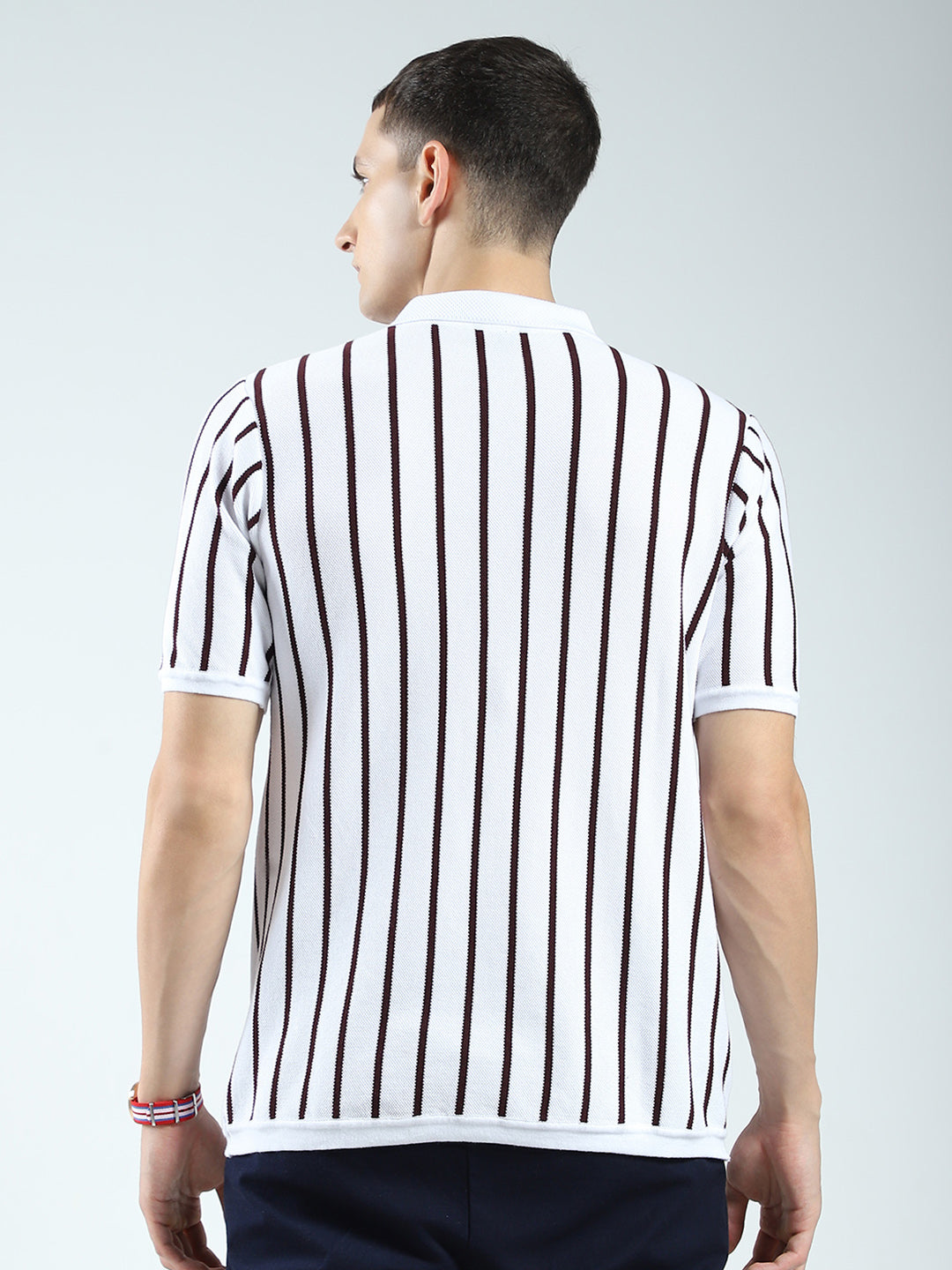 Men White Stripe Collar Half Sleeve T-Shirt