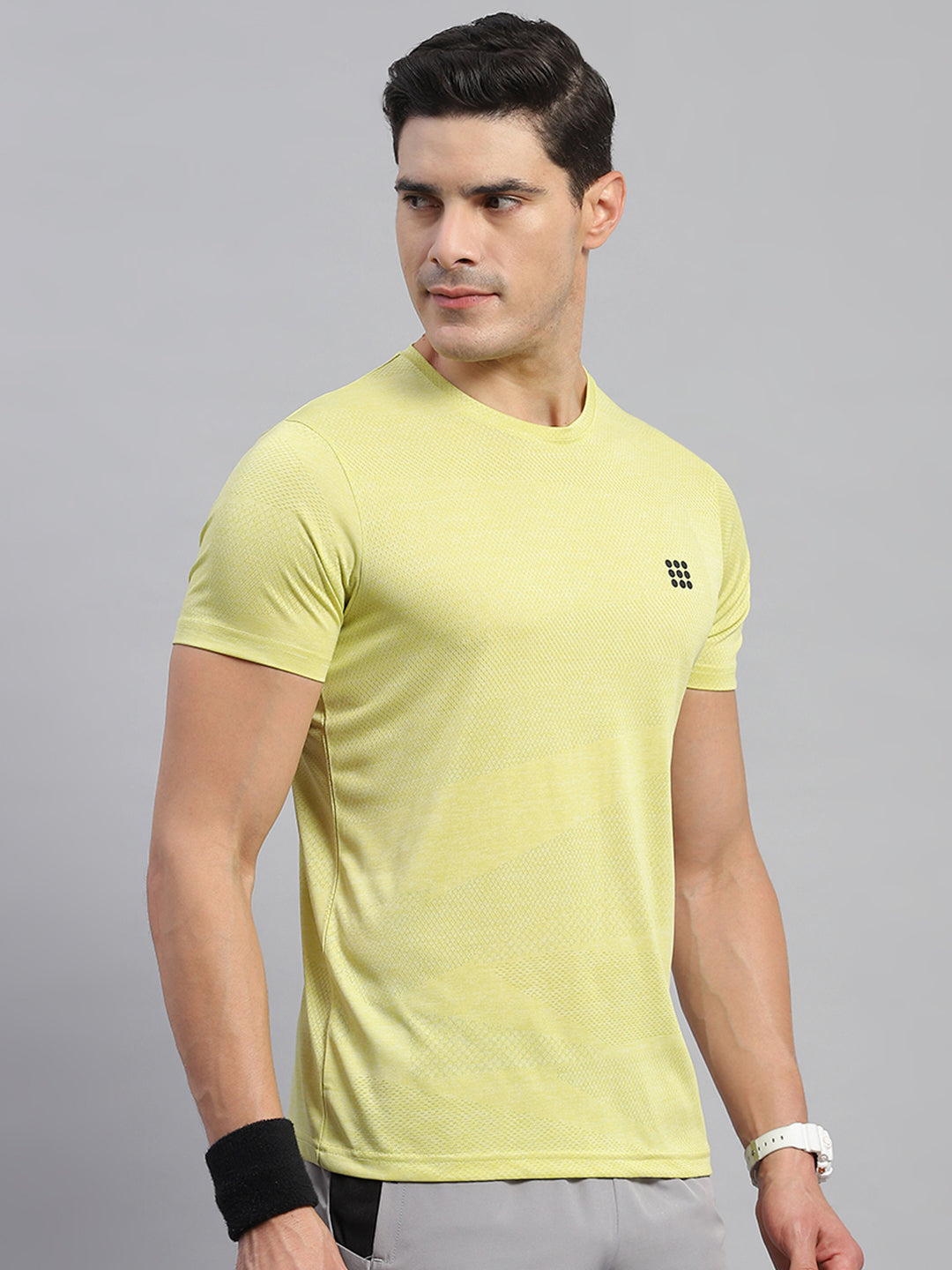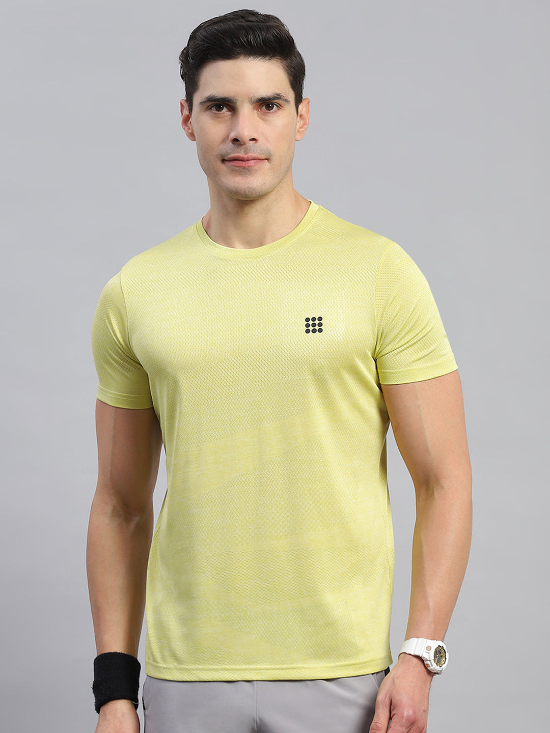Men Yellow Self Design Round Neck Half Sleeve T-Shirt