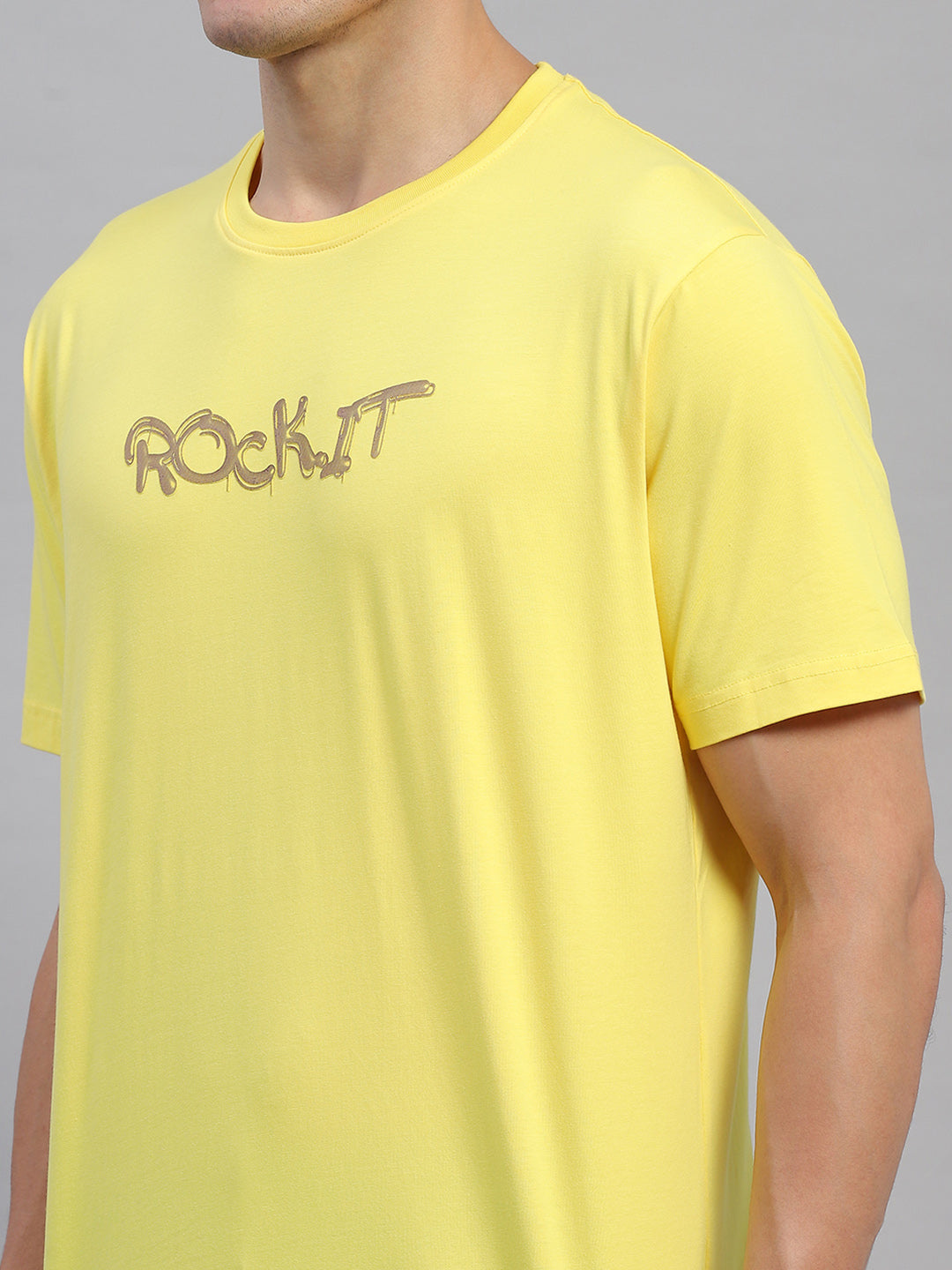 Men Yellow Solid Round Neck Half Sleeve T-Shirt