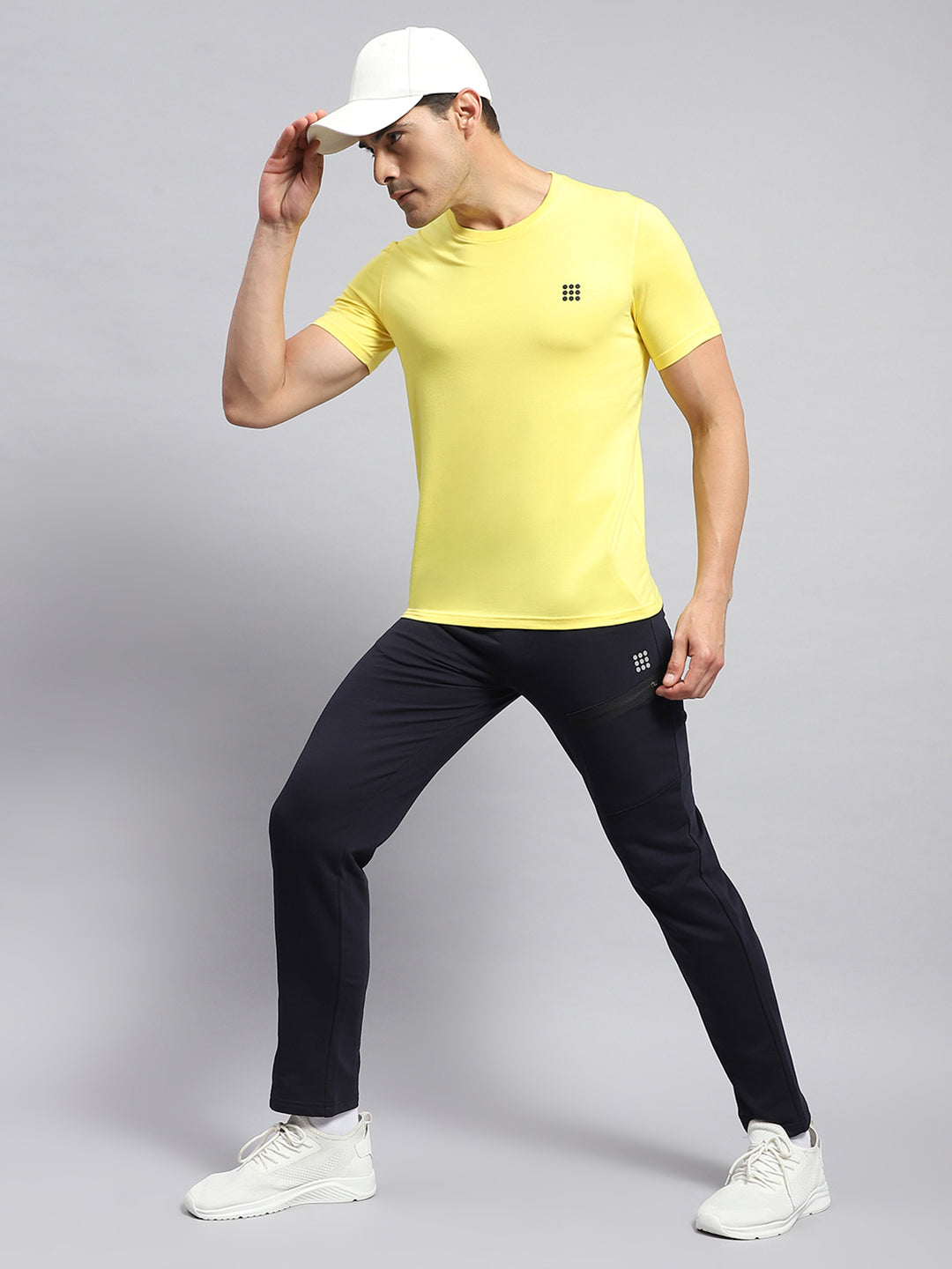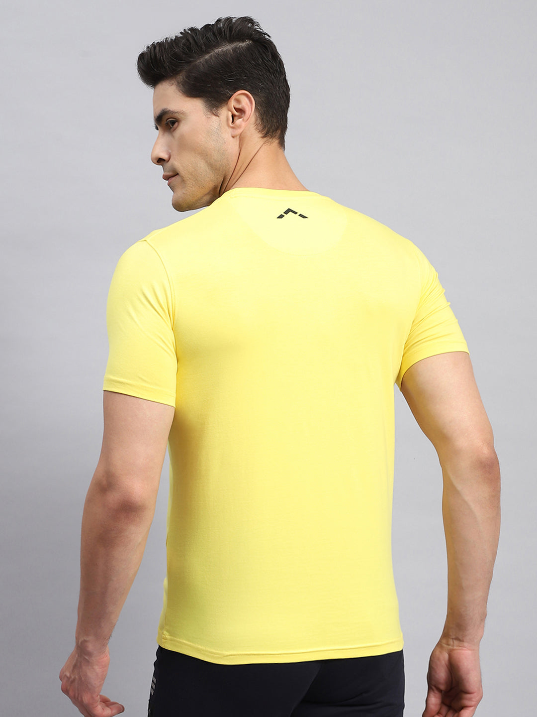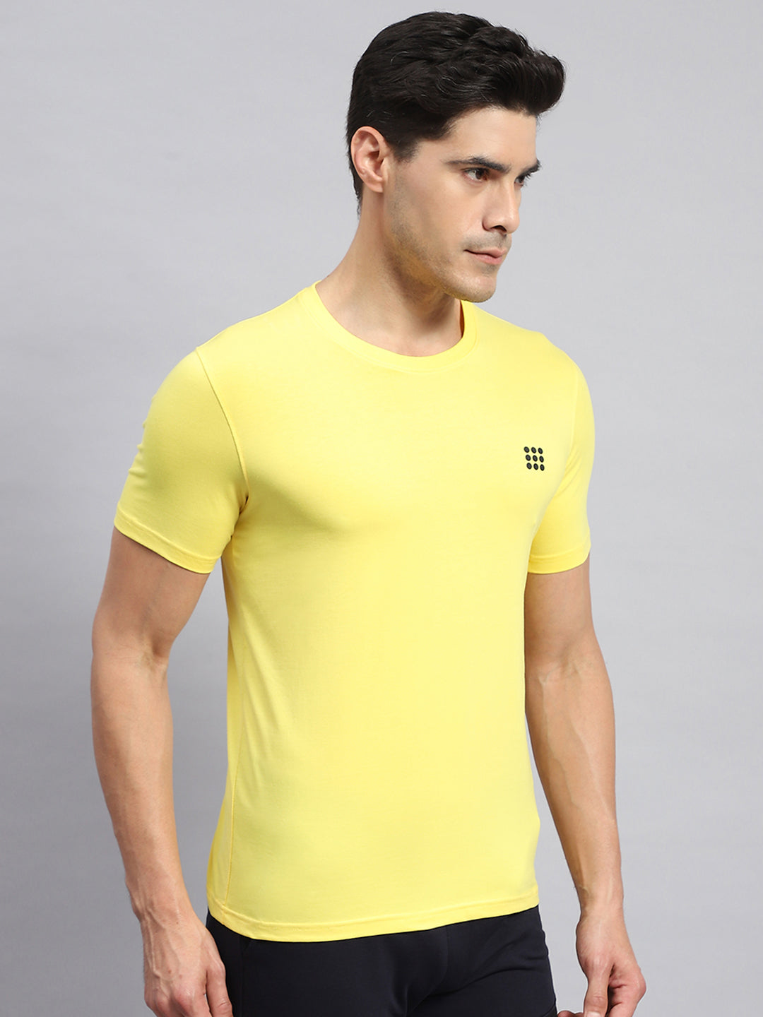 Men Yellow Solid Round Neck Half Sleeve T-Shirt