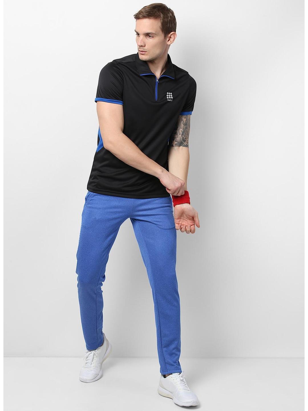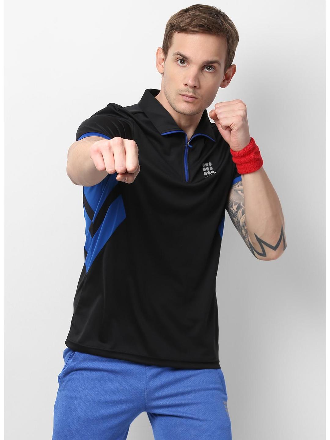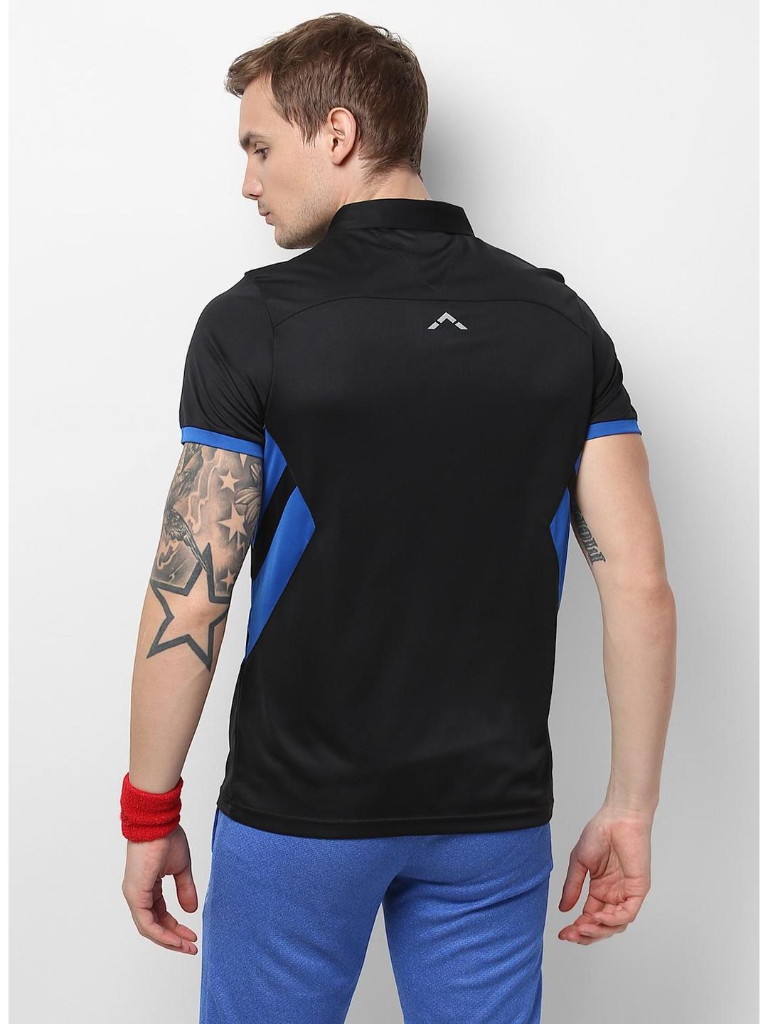 Men Black Self Design Collar Half Sleeve T-Shirt