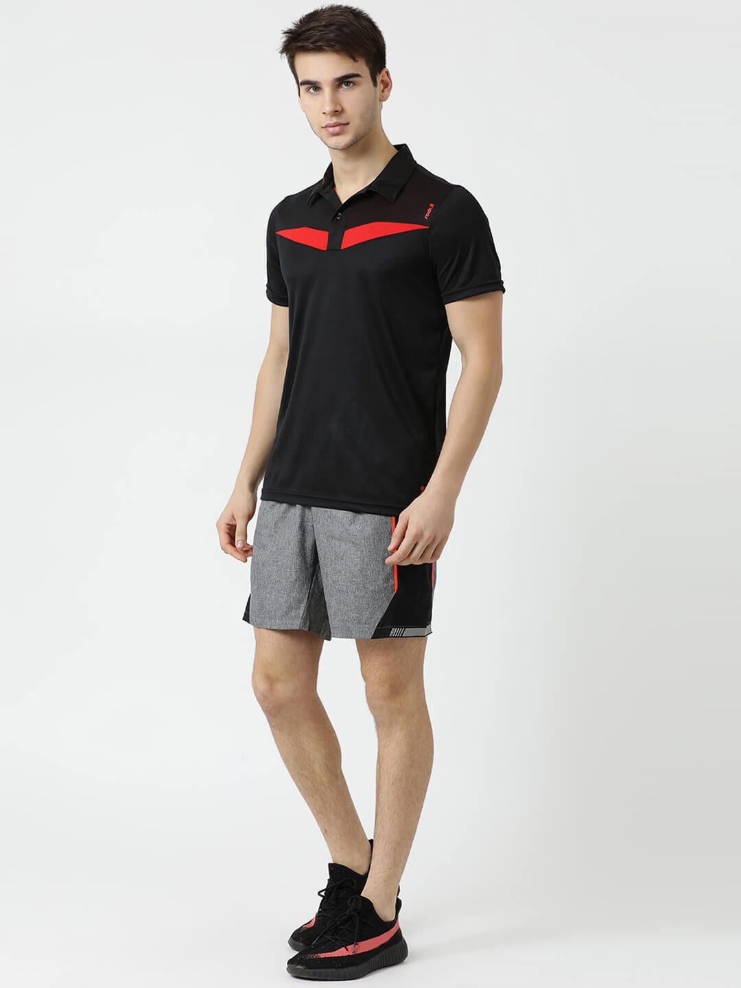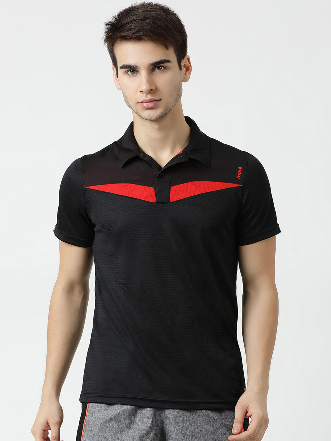 Men Black Self Design Collar Half Sleeve T-Shirt