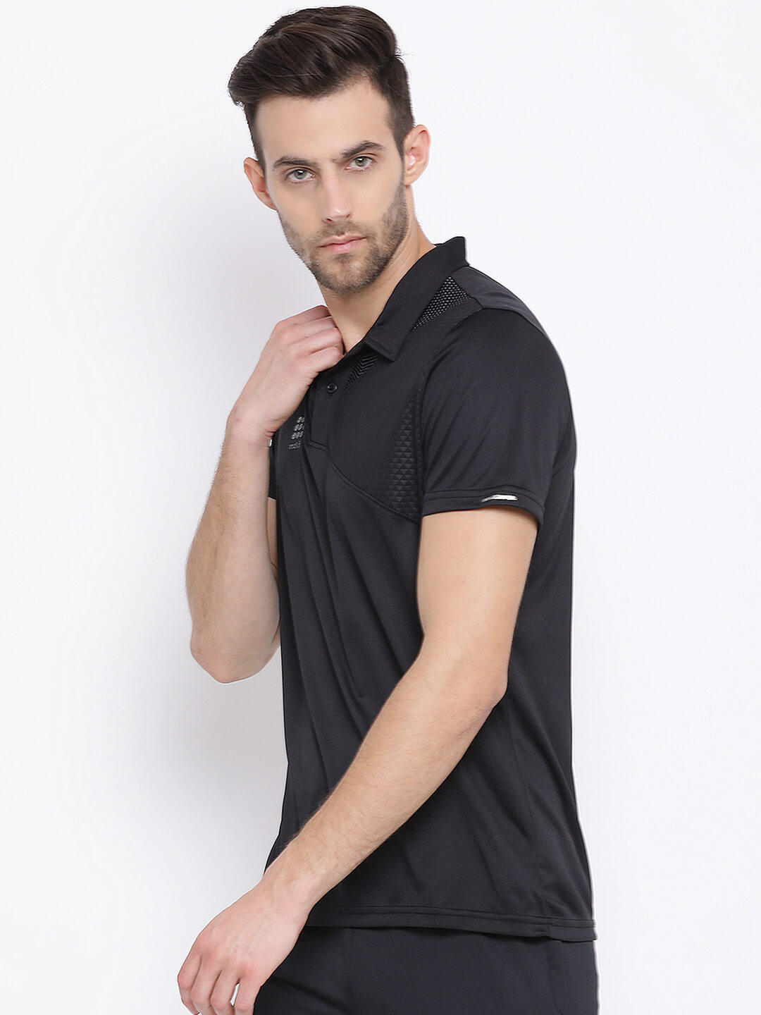 Men Black Collar Regular Fit T-Shirt