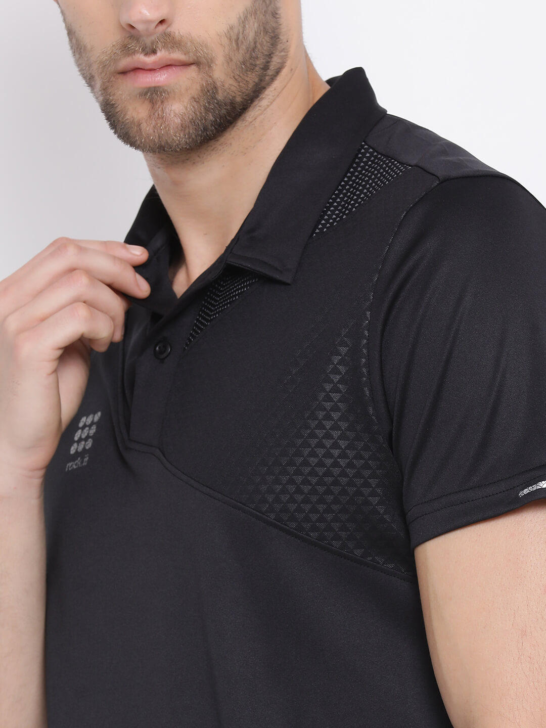 Men Black Self Design Collar Half Sleeve T-Shirt