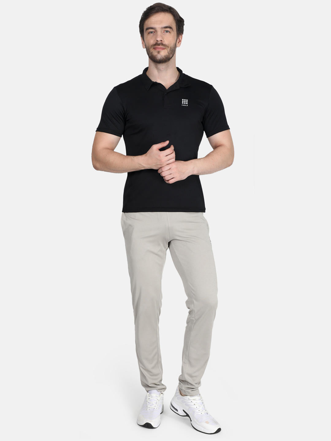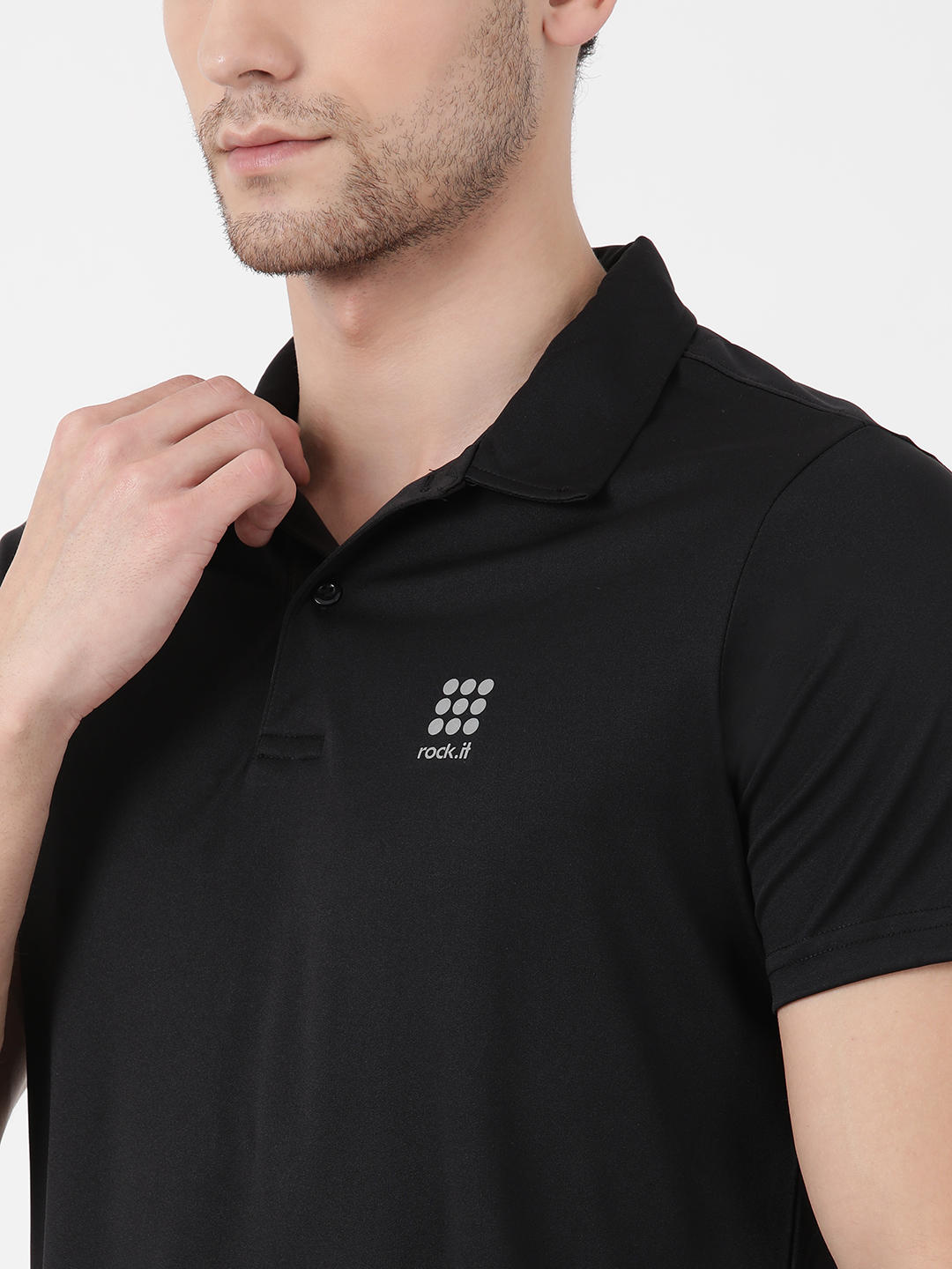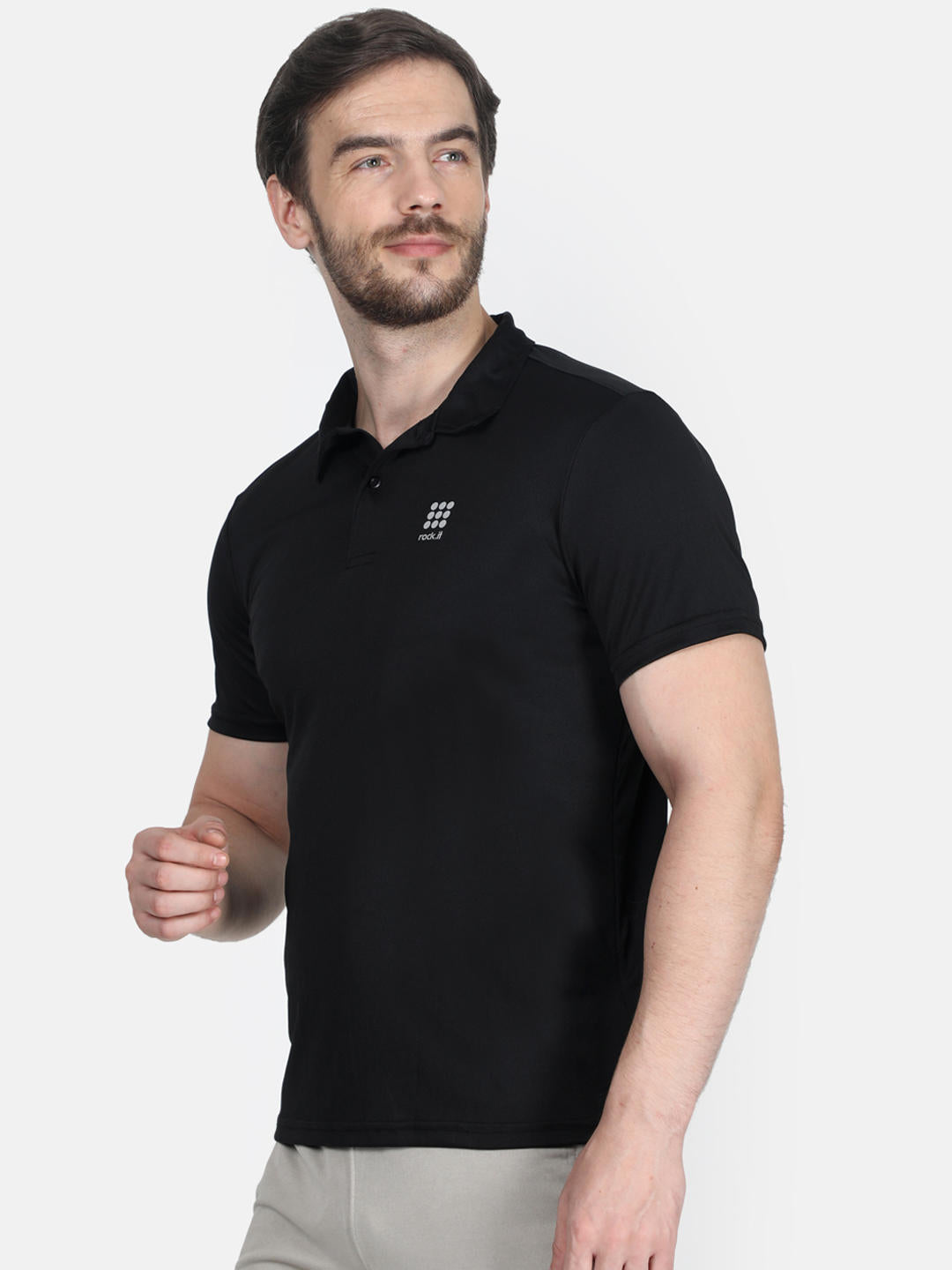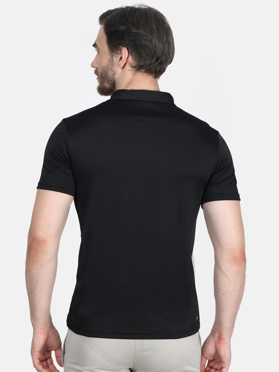 Men Black Self Design Collar Half Sleeve T-Shirt