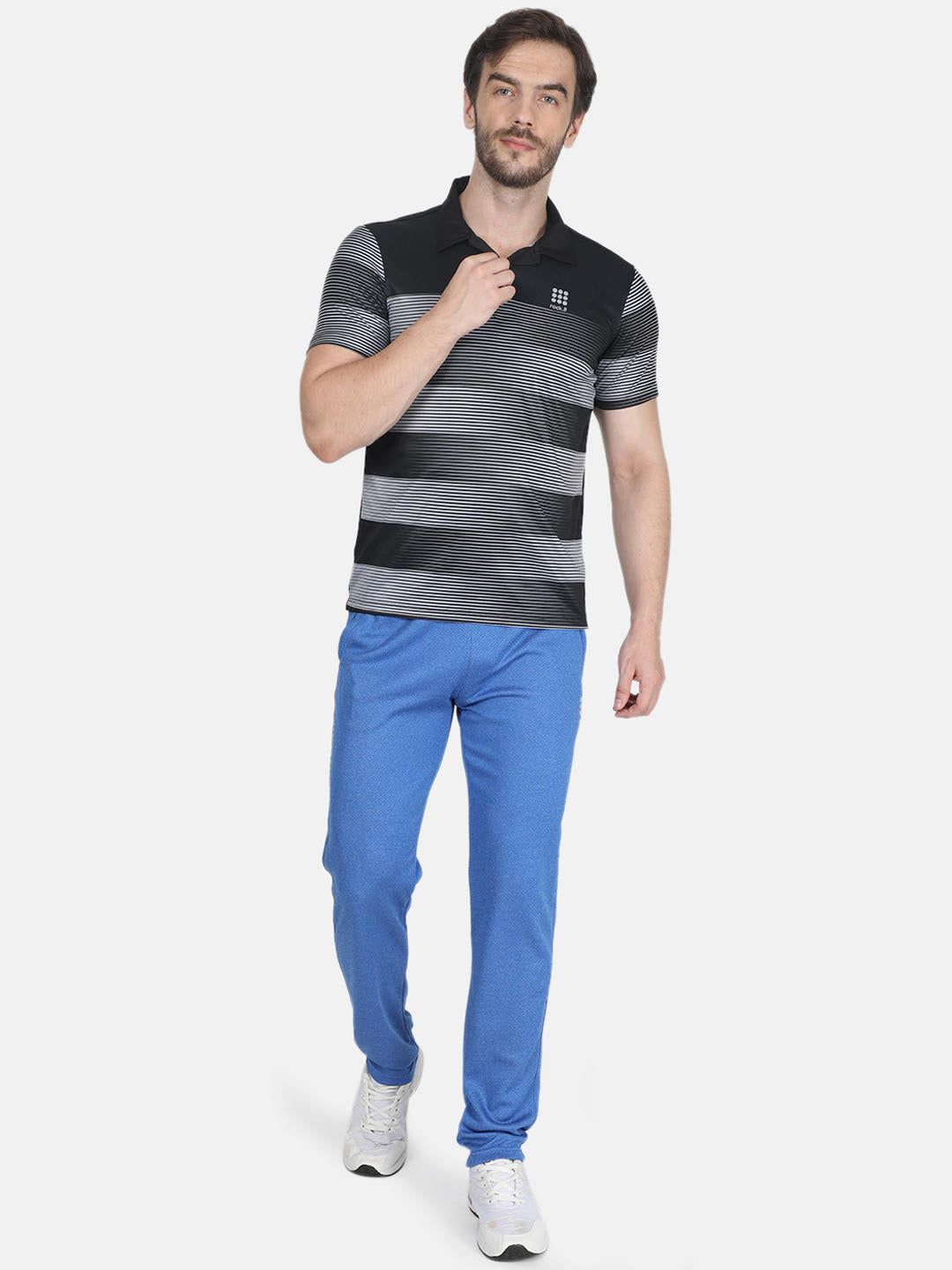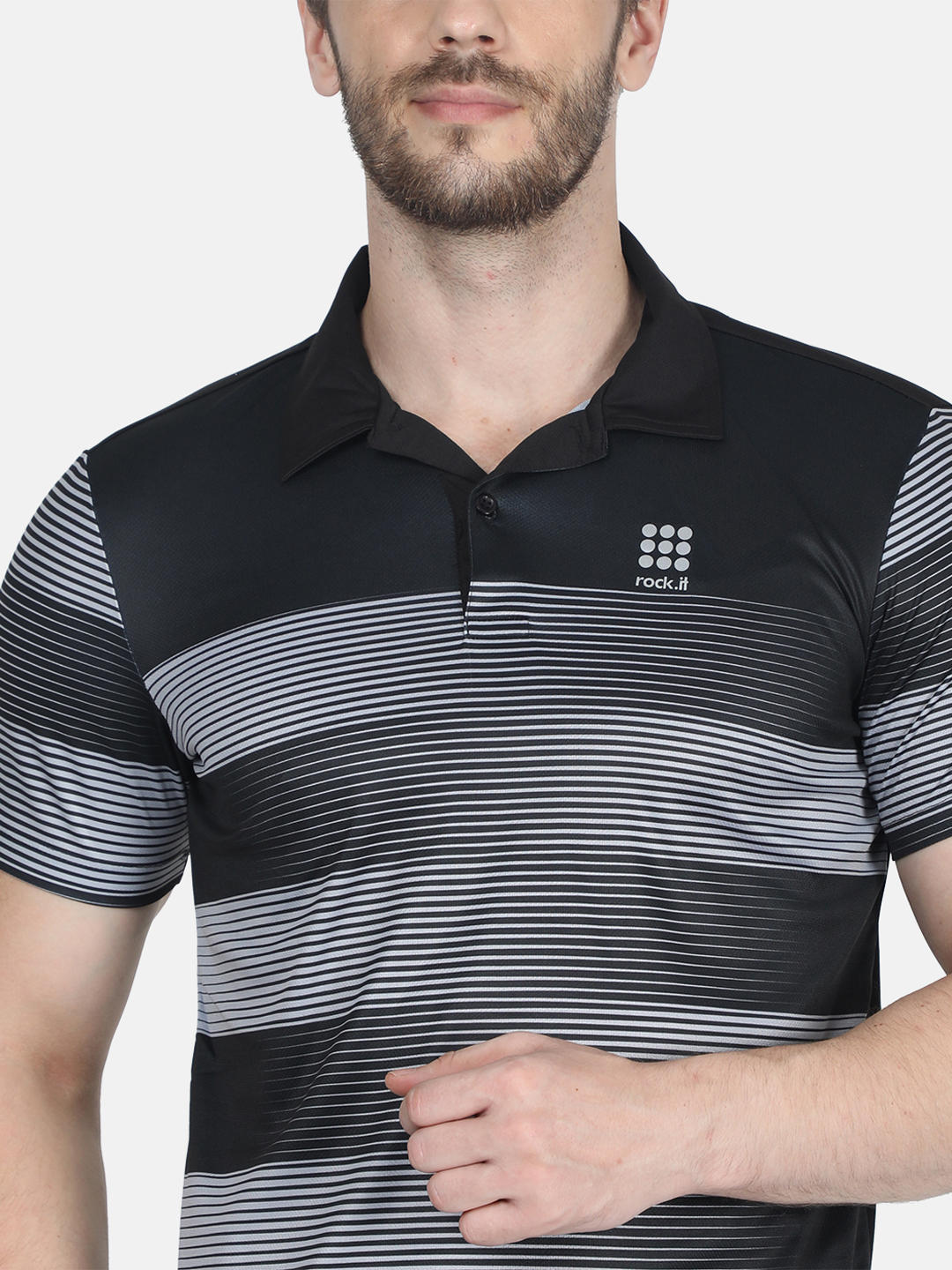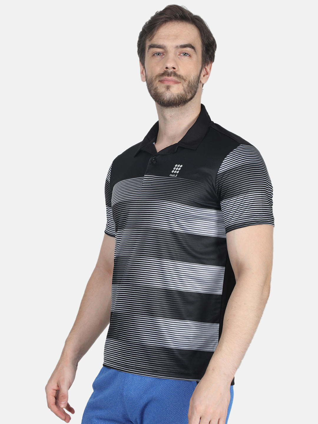 Men Black Self Design Collar Half Sleeve T-Shirt