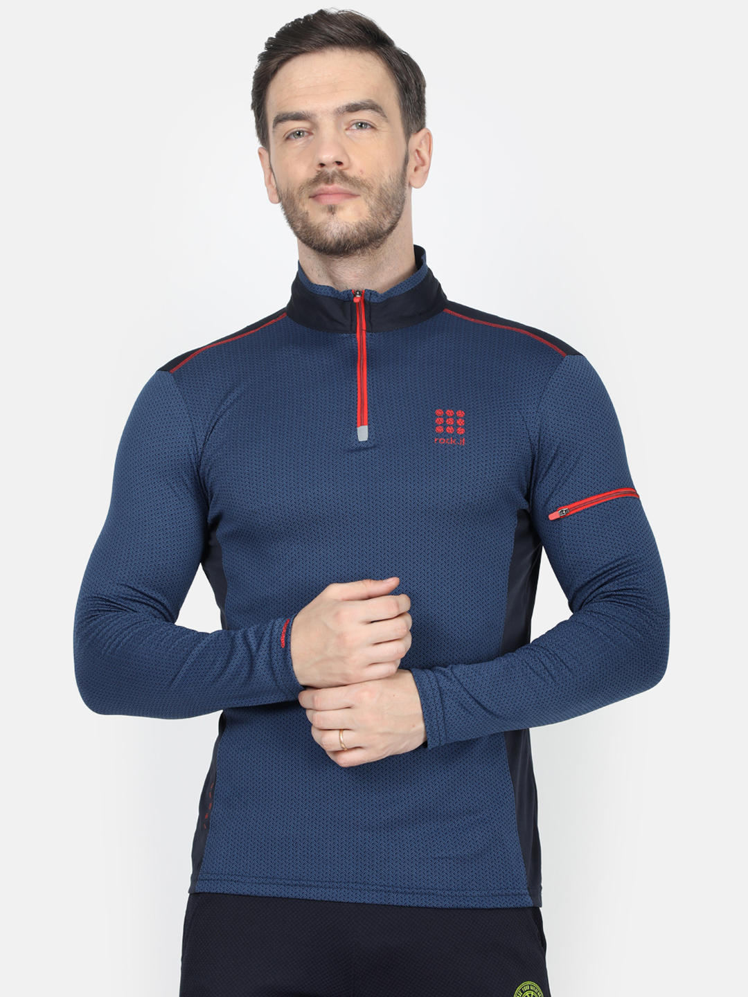 Men Black Solid Collar Full Sleeve Winter T-Shirt