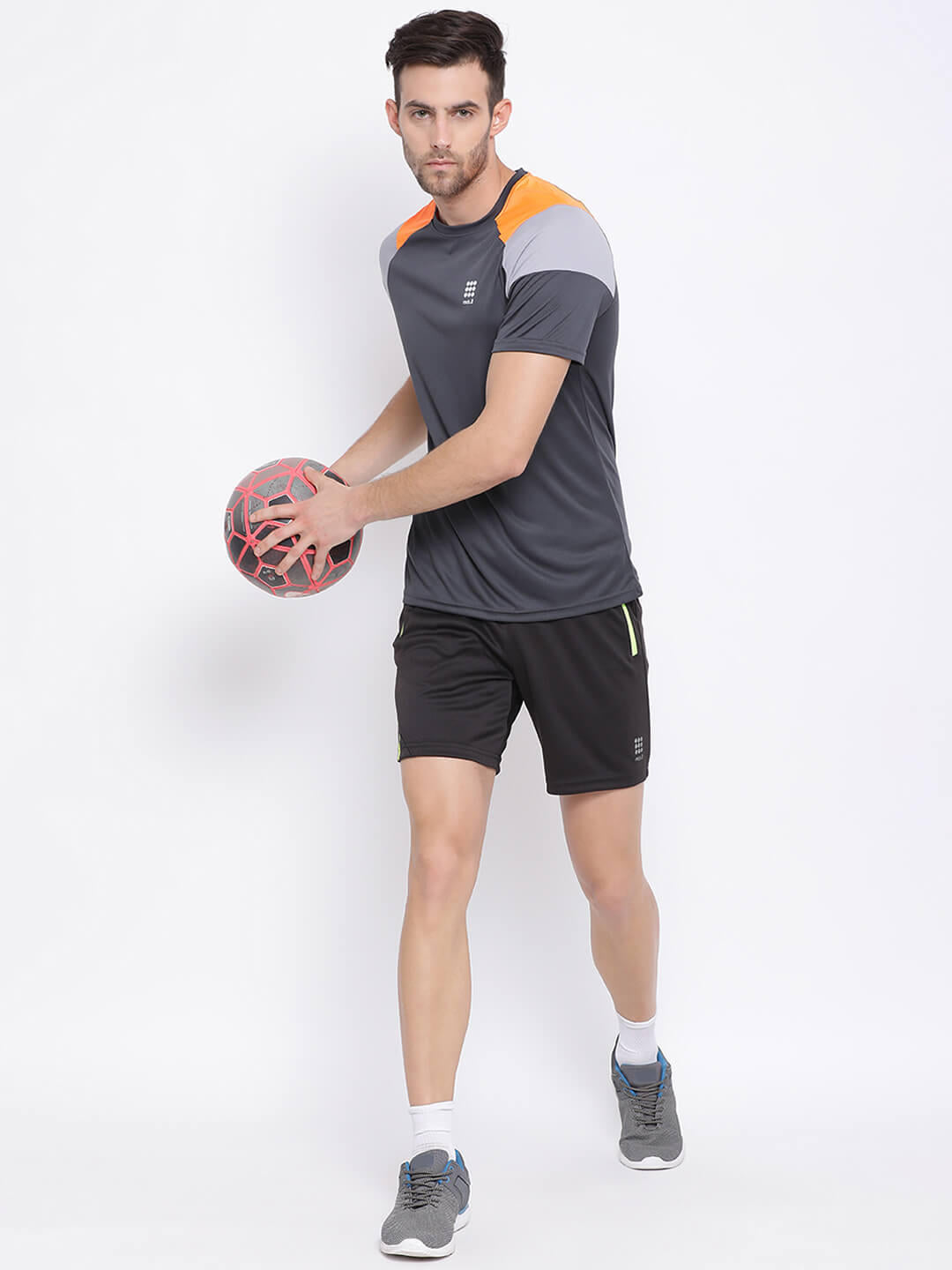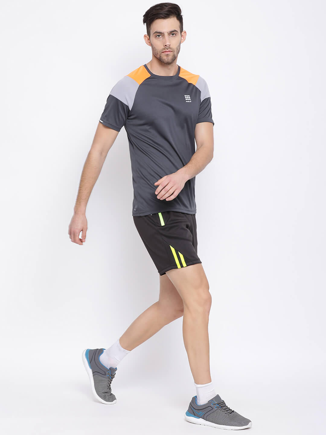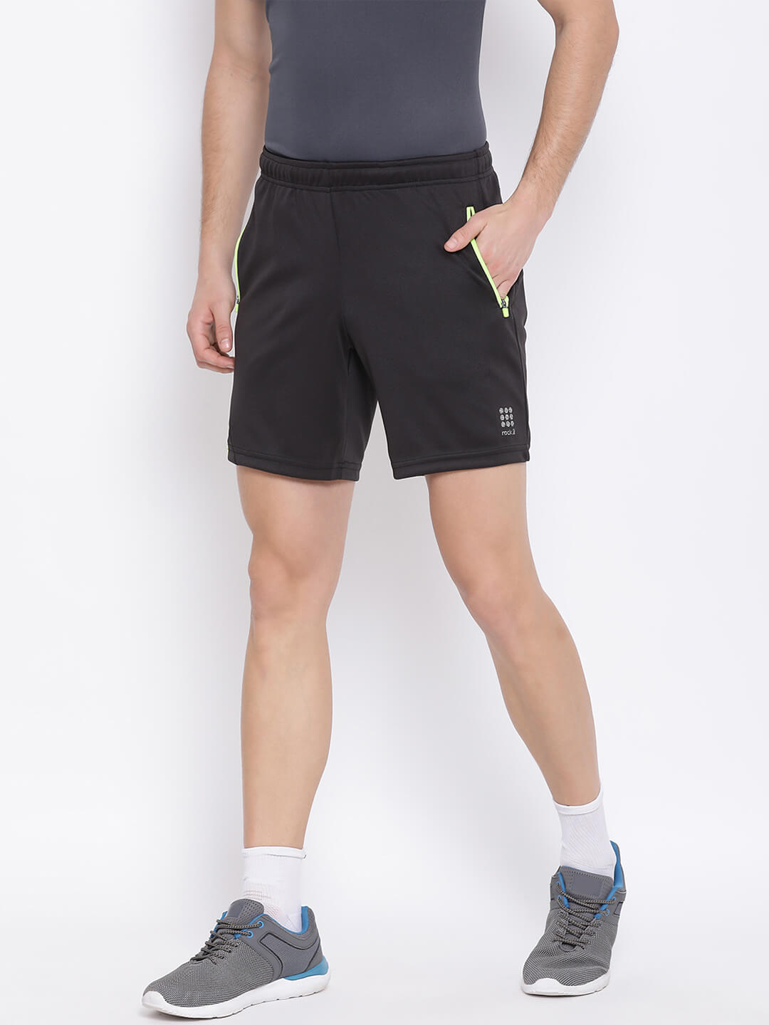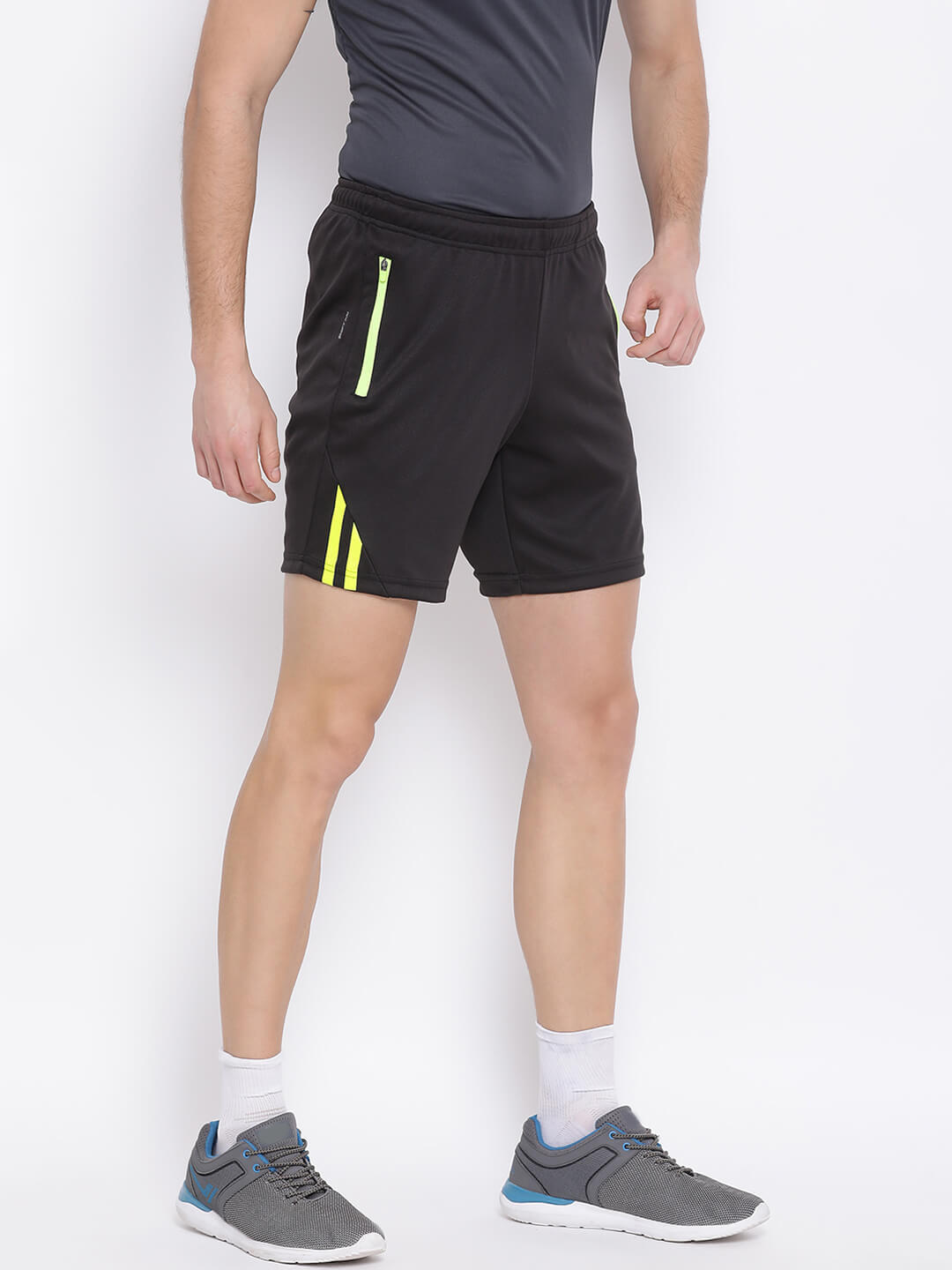 Men Black Self Design V Neck Half Sleeve Shorts Set