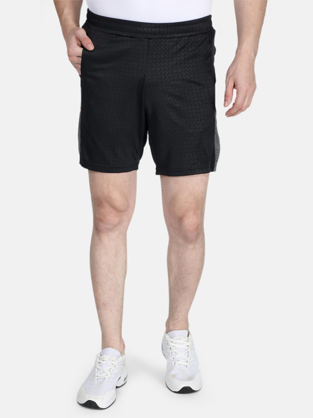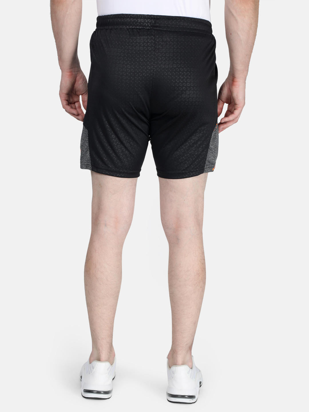 Men Black Self Design V Neck Half Sleeve Shorts Set