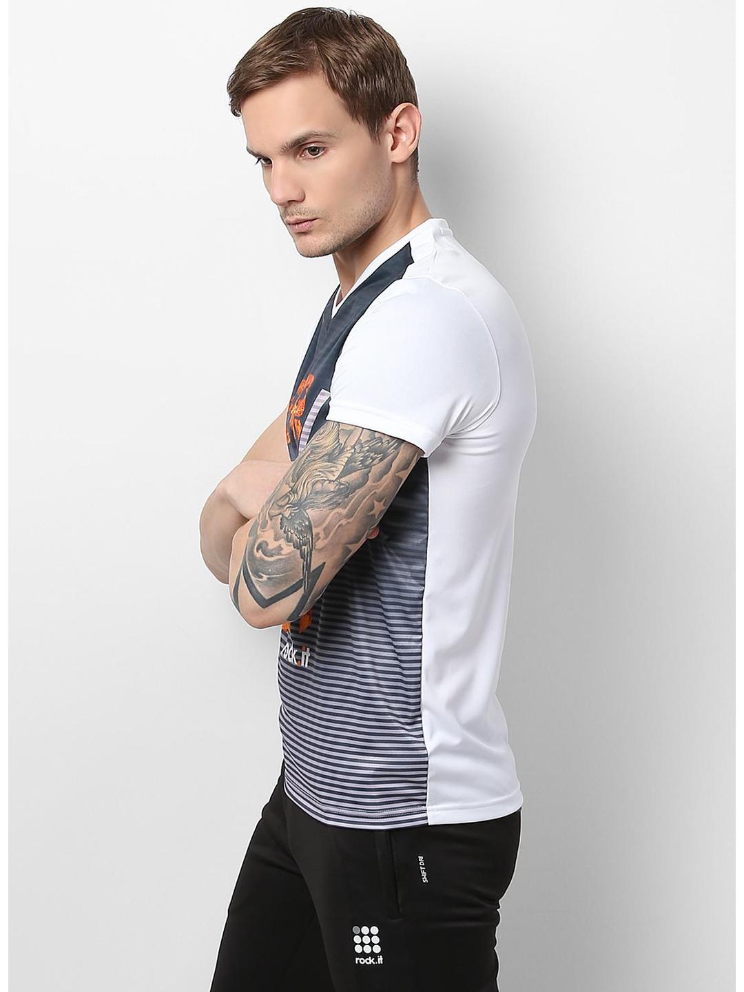Men Cotton Blend White Printed T-Shirt