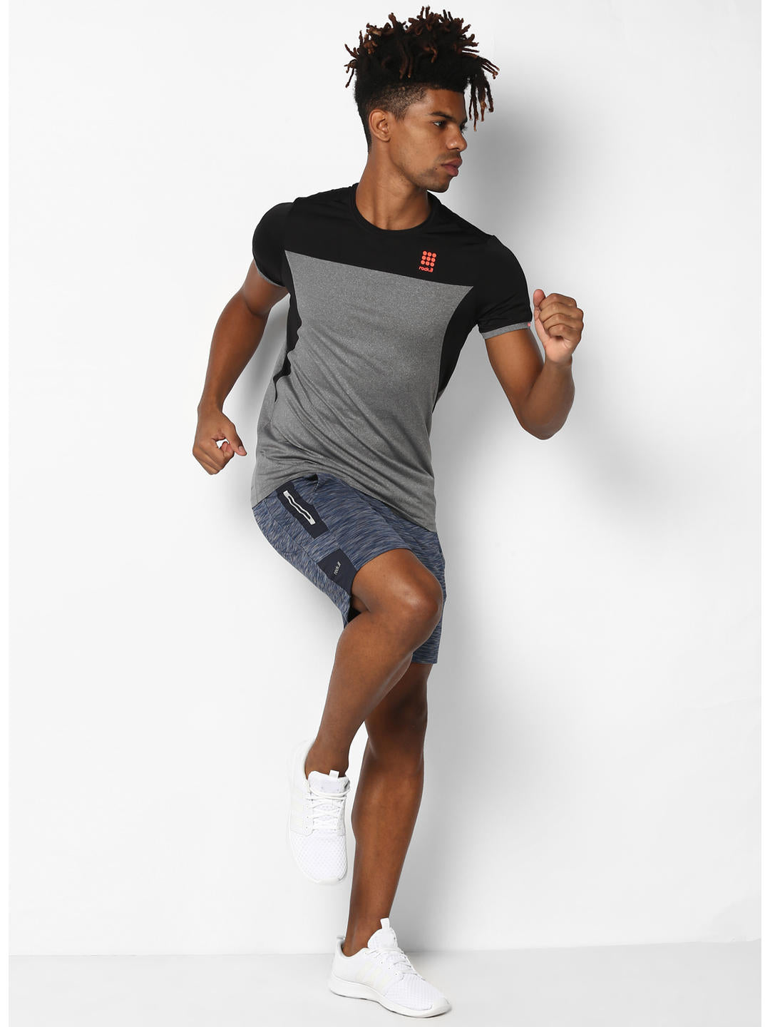 Men Black Self Design V Neck Half Sleeve Shorts Set