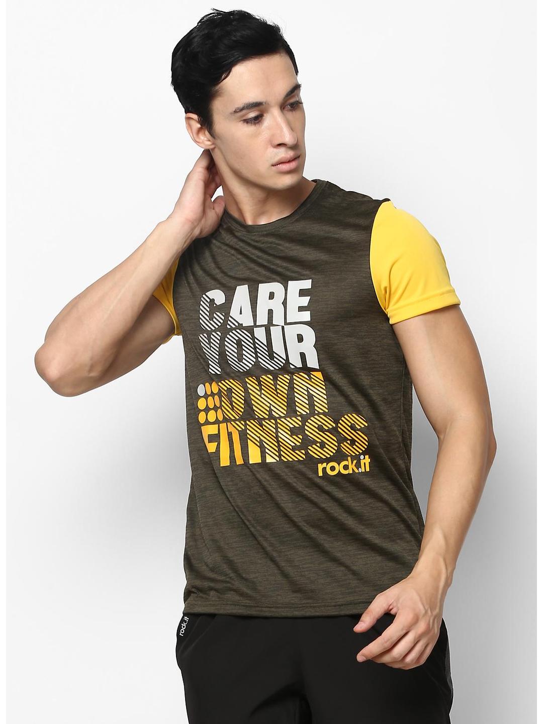 Men Polyester Blend Olive Self Design T-Shirt