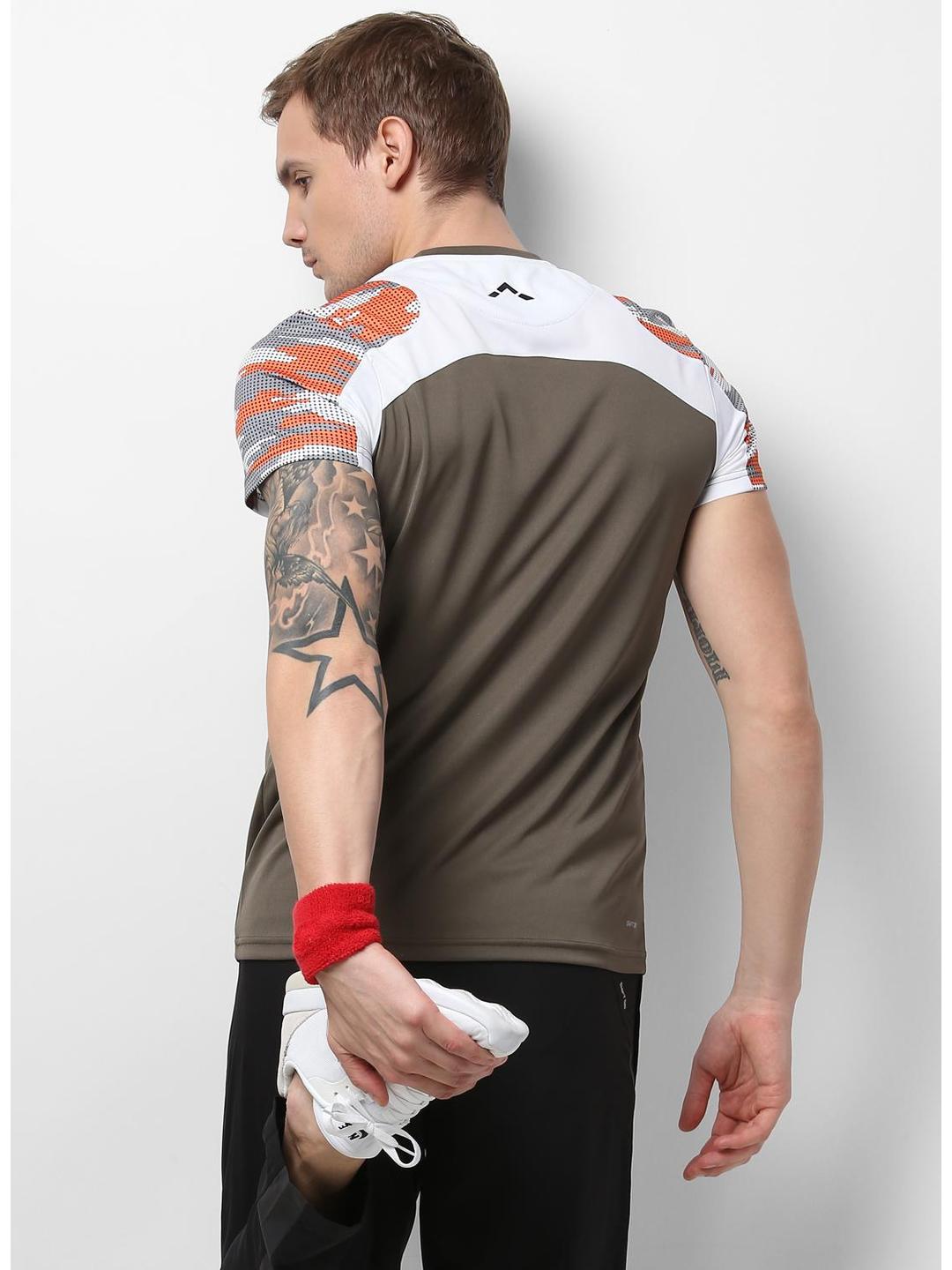 Men Brown White Round Neck Smart Fit T-Shirt