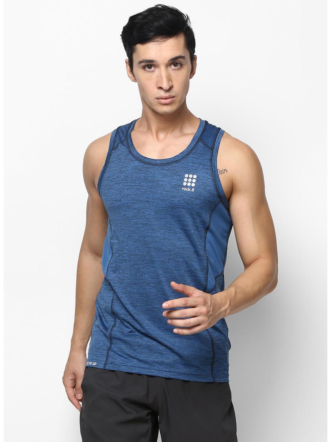Men Dark Blue Round Neck Smart Fit Sandow