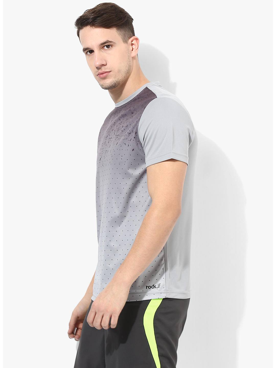 Men Grey Black Round Neck Smart Fit T-Shirt