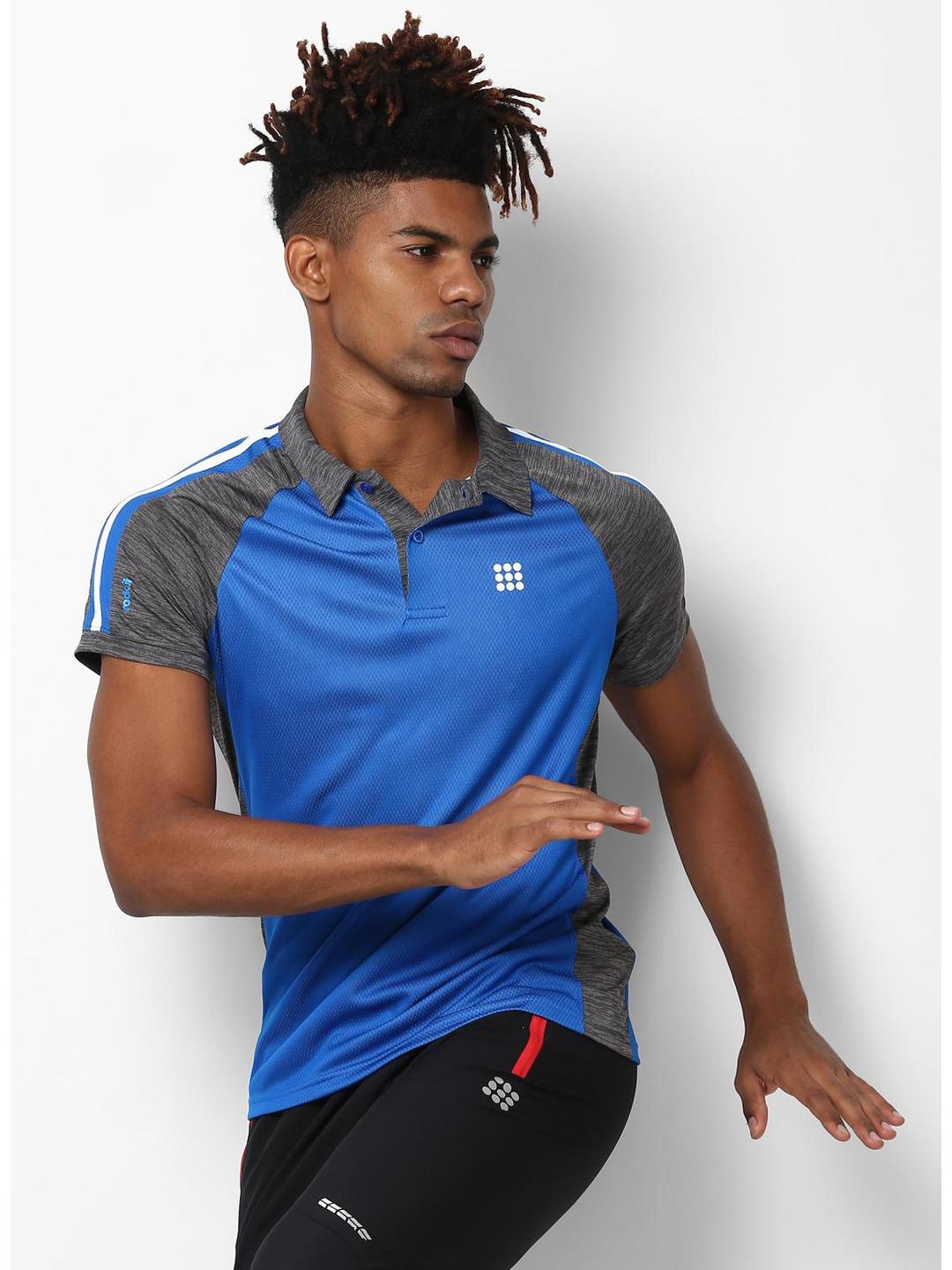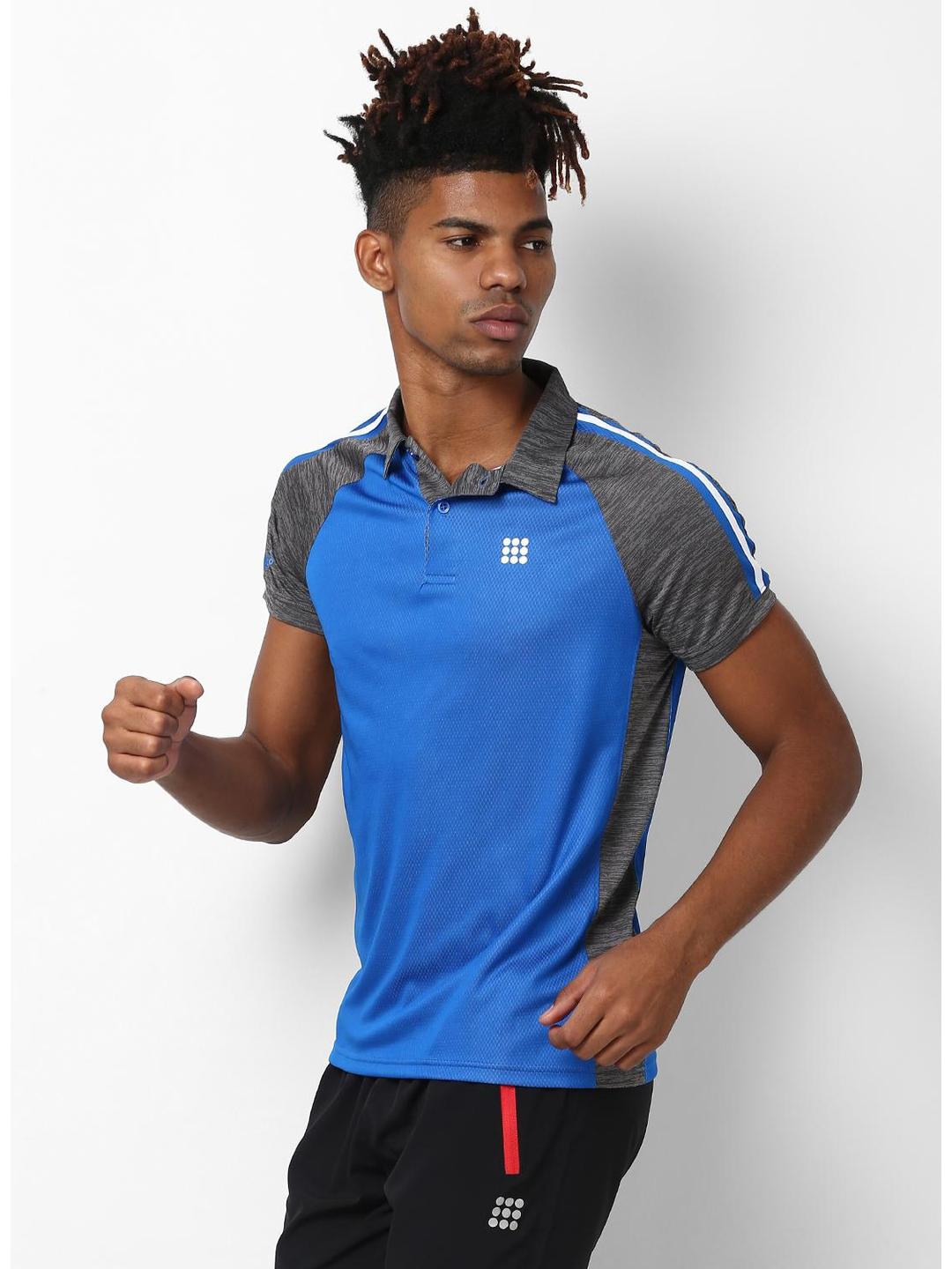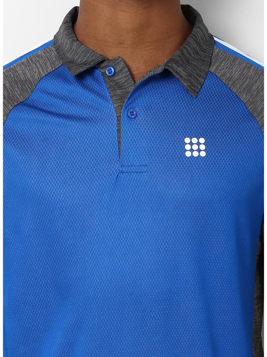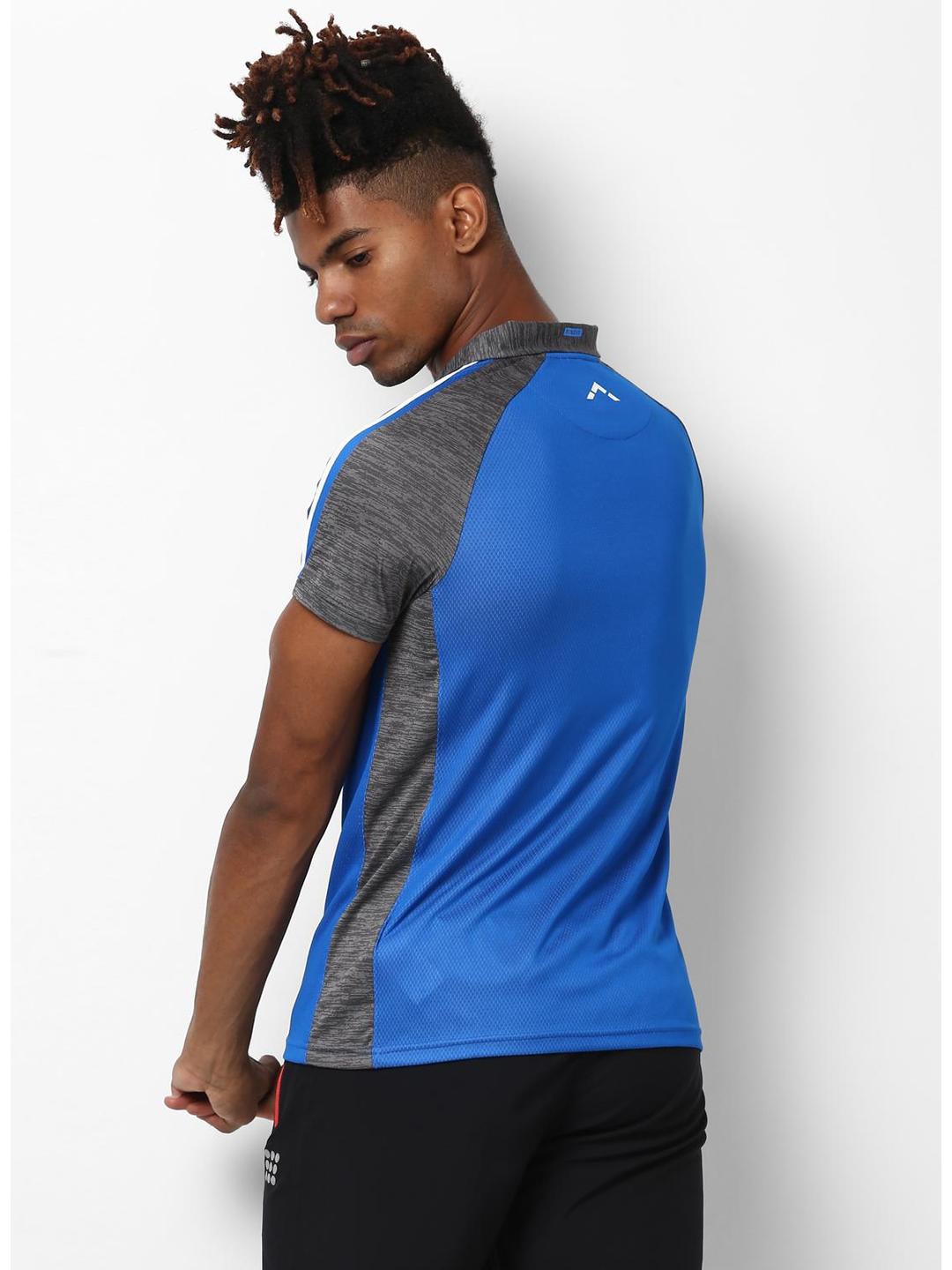Men Grey Blue Collar Regular Fit T-Shirt