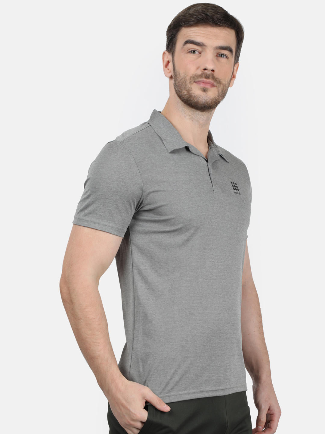 Men Grey Collar Regular Fit T-Shirt