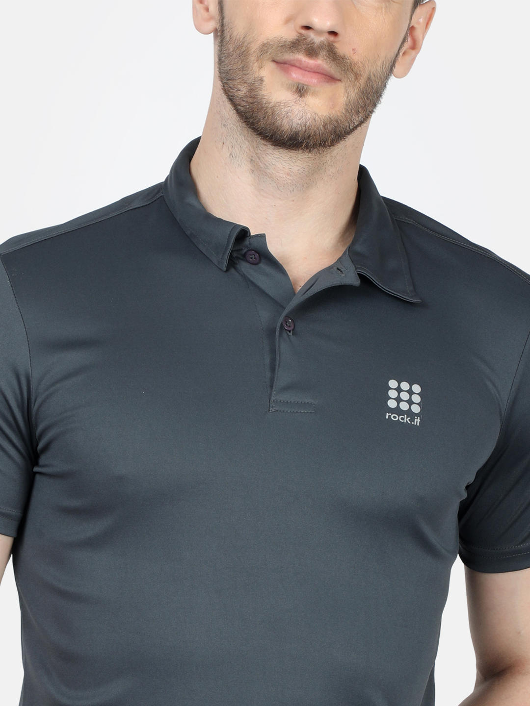 Men Grey Solid Round Neck Half Sleeve T-Shirt