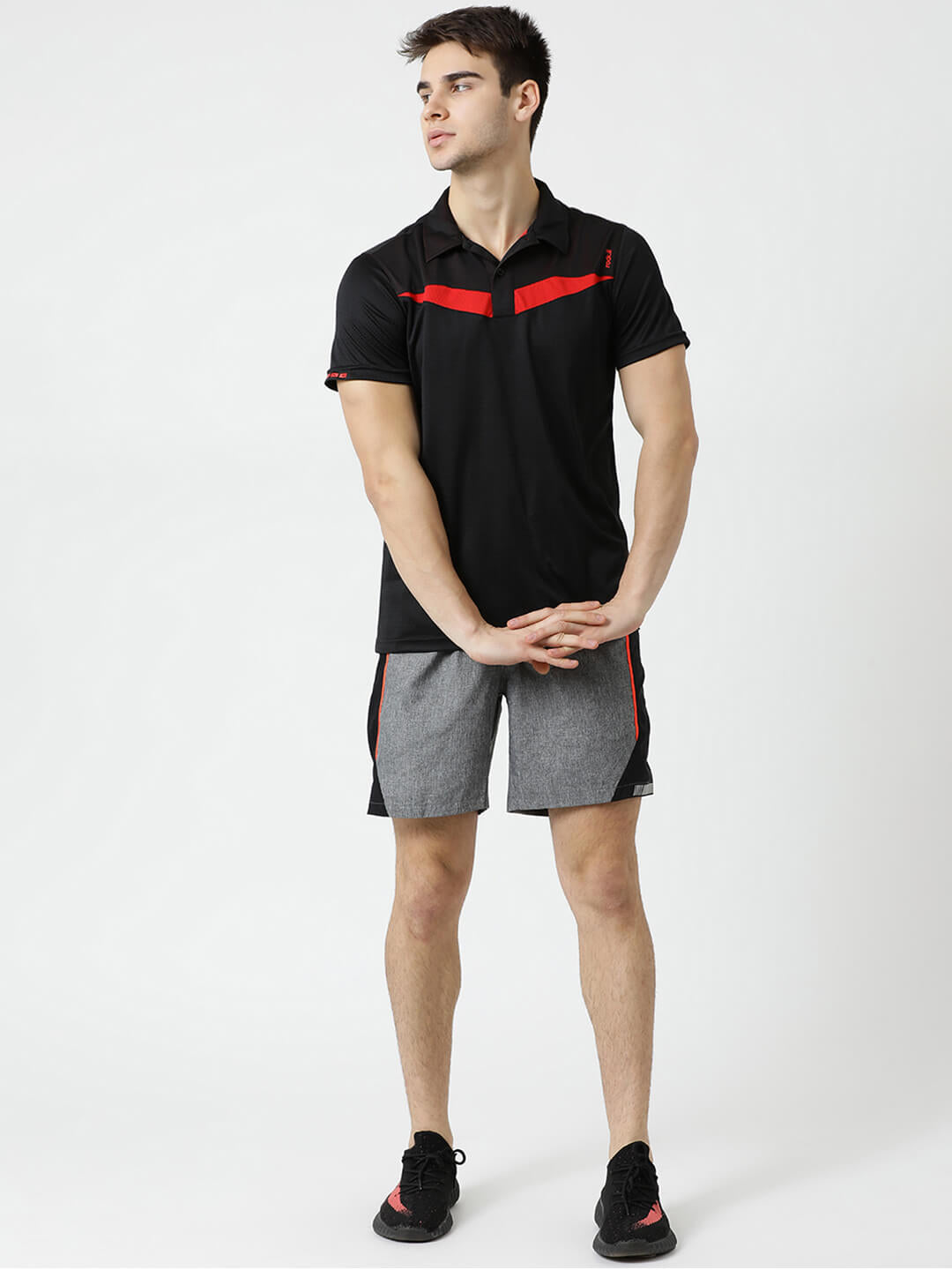 Men Black Self Design V Neck Half Sleeve Shorts Set