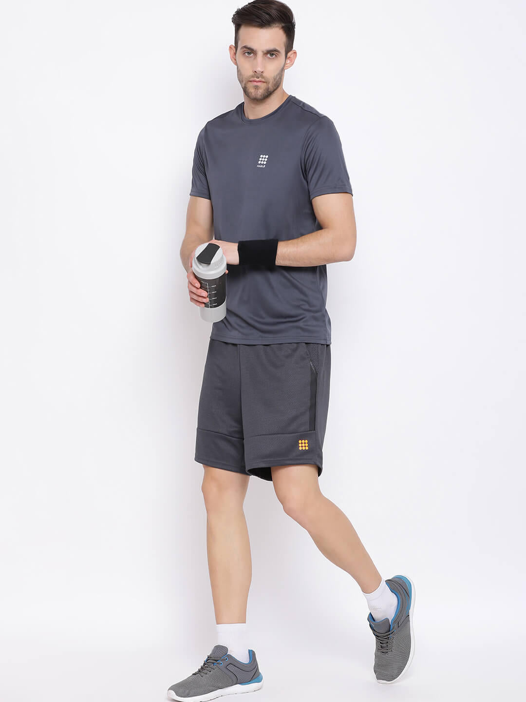 Men Black Self Design V Neck Half Sleeve Shorts Set