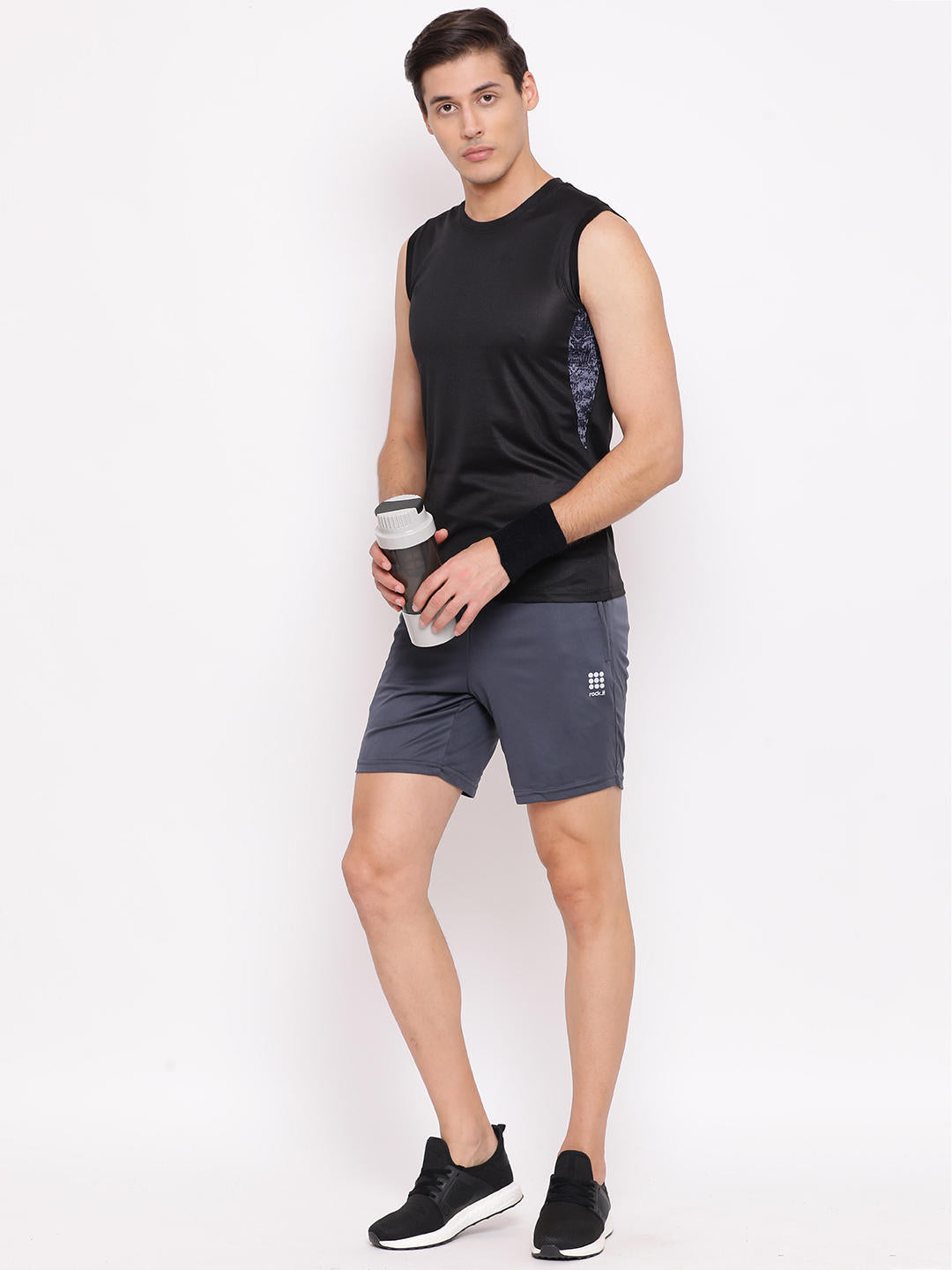 Men Black Self Design V Neck Half Sleeve Shorts Set
