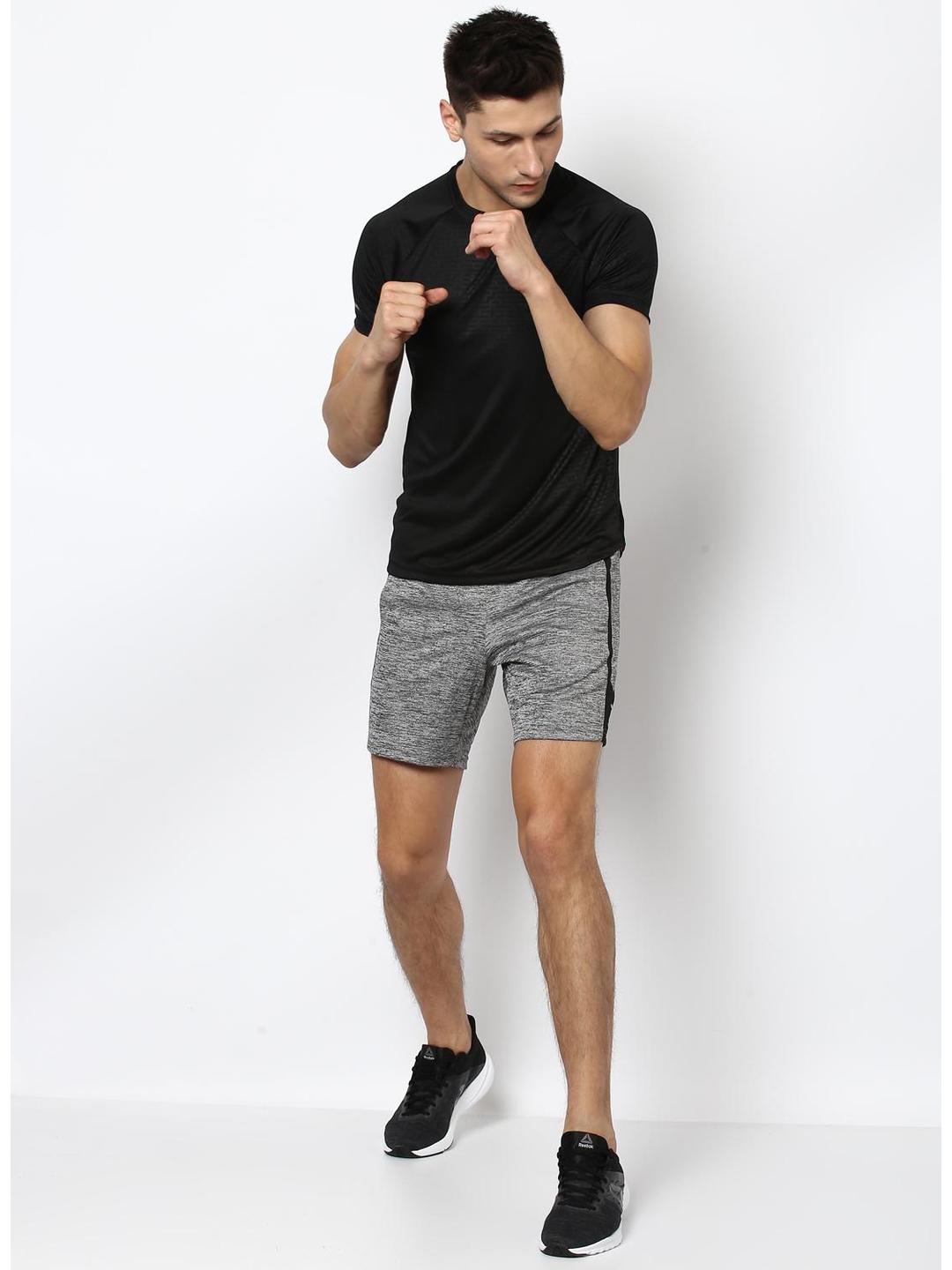 Men Black Self Design V Neck Half Sleeve Shorts Set