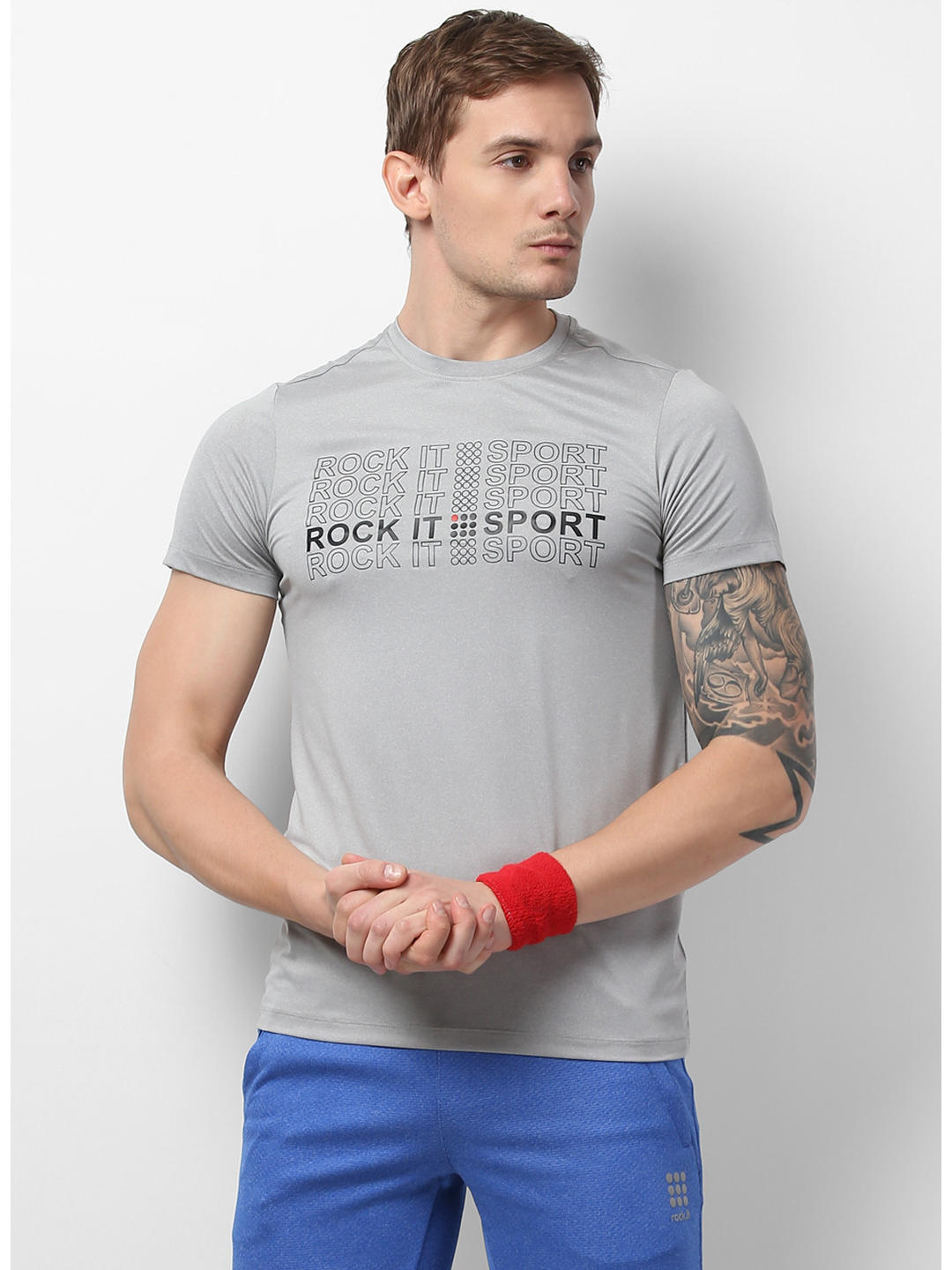 Men Grey Solid Round Neck Half Sleeve T-Shirt