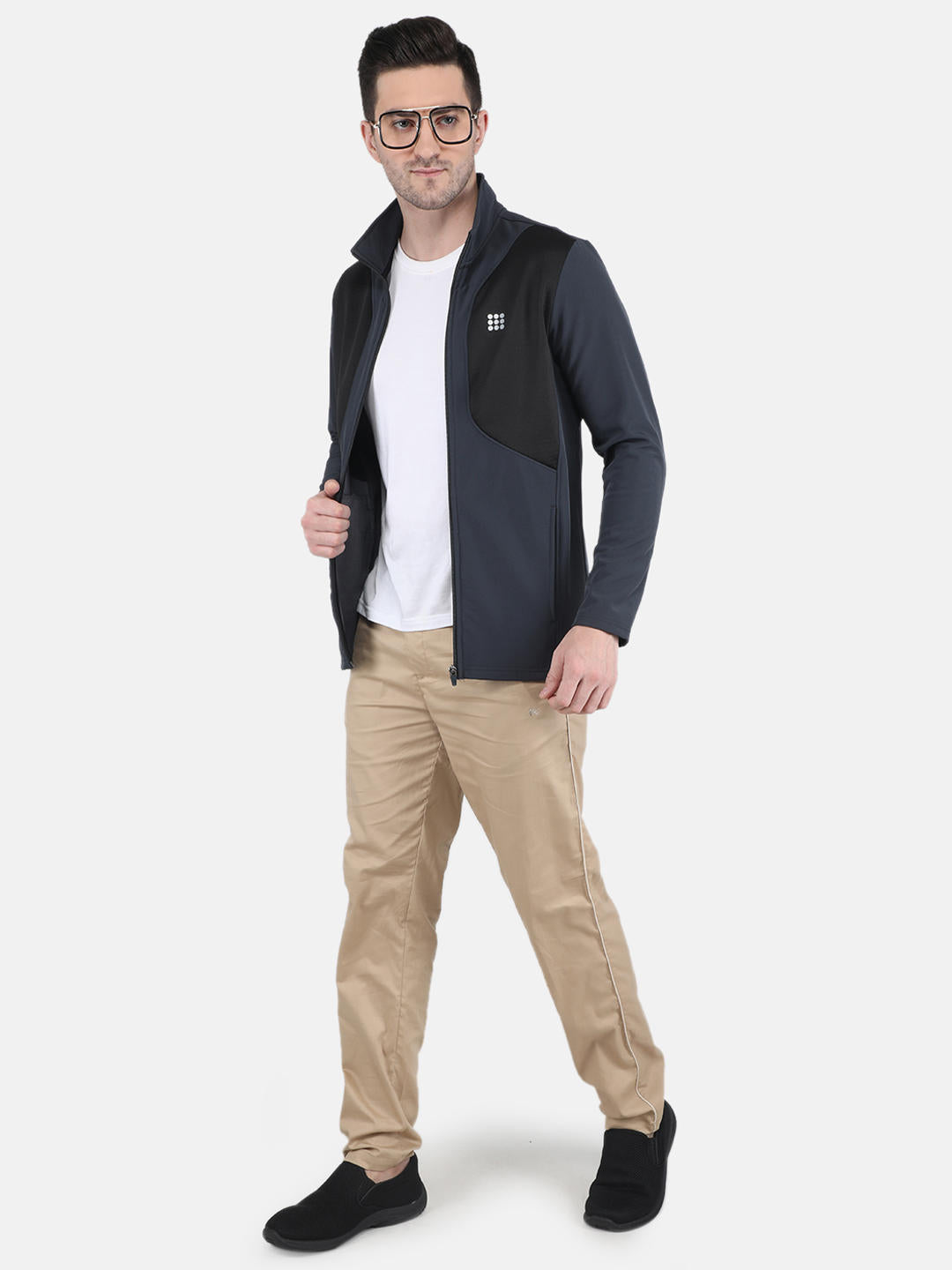 Men Navy Blue Solid Hooded Full Sleeve Reversible Jacket