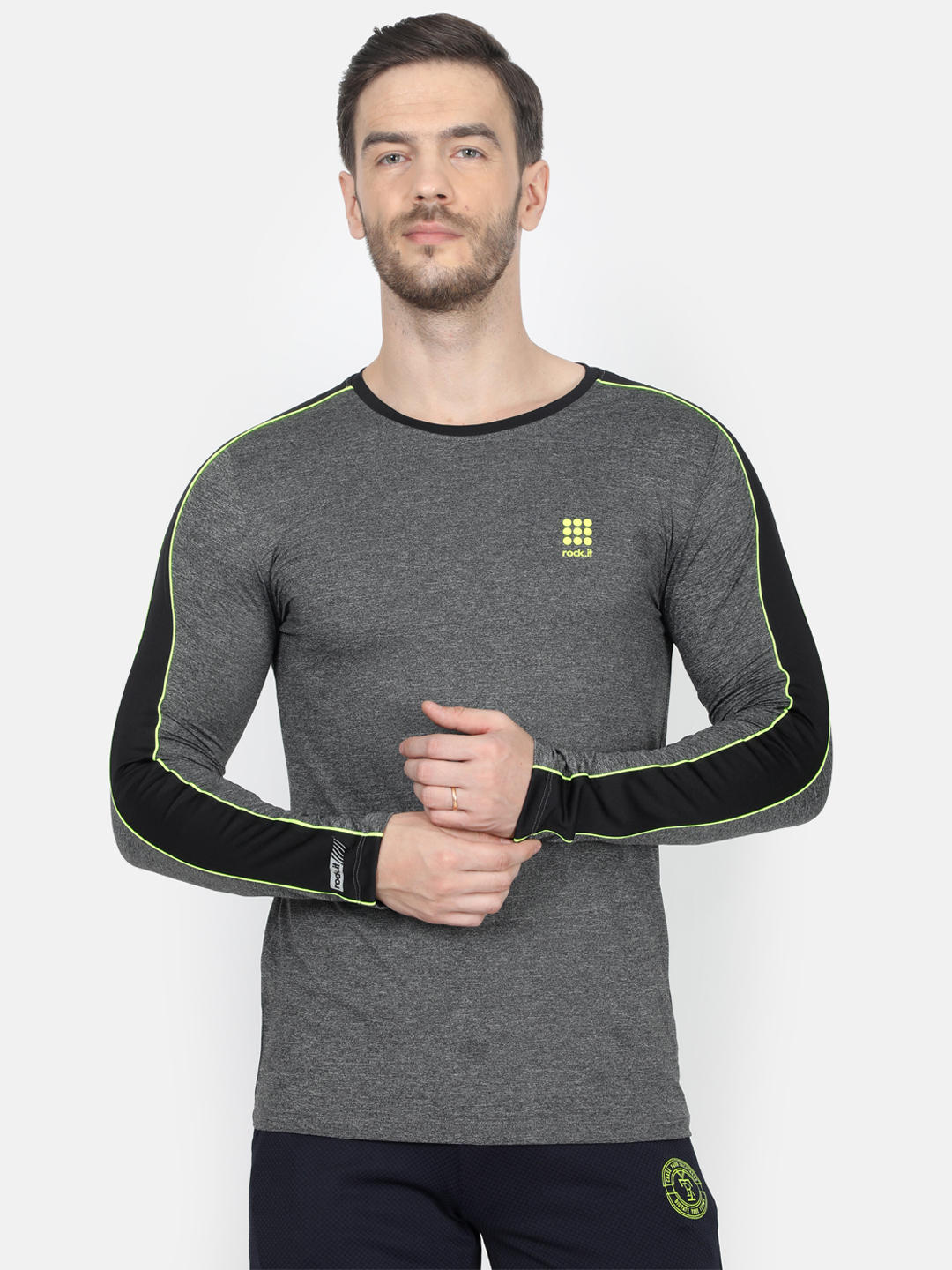 Men Grey Slim Fit Full Sleeve Round Neck T-Shirt
