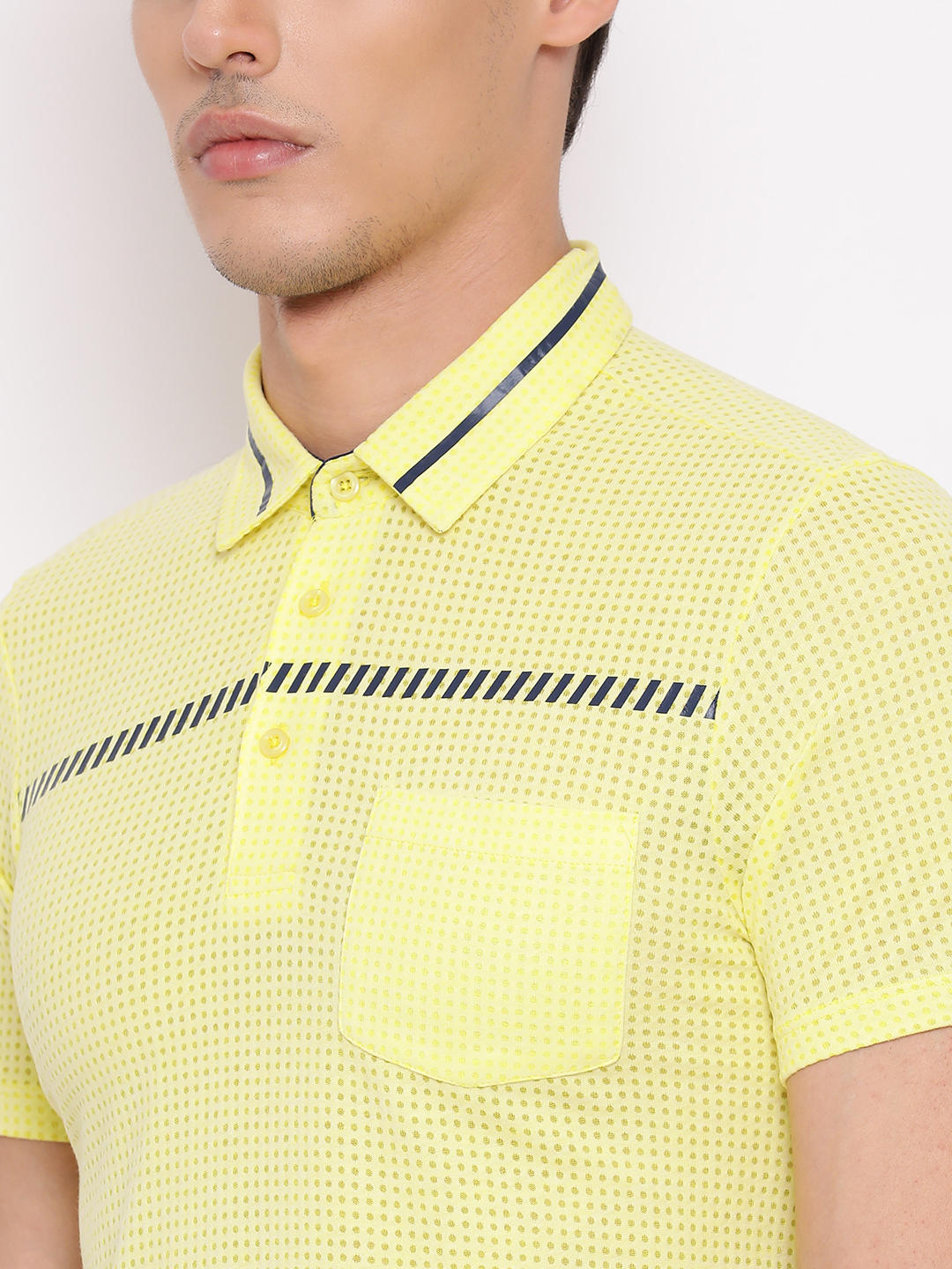 Men Neon Green Solid Collar Half Sleeve T-Shirt