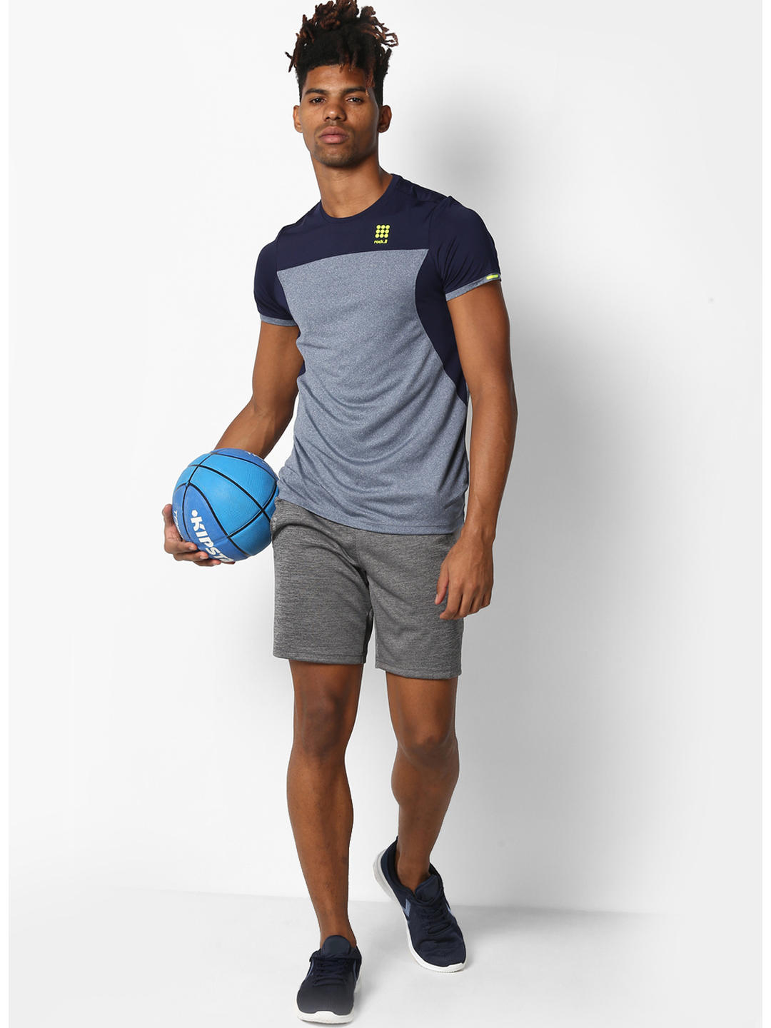 Men Black Self Design V Neck Half Sleeve Shorts Set