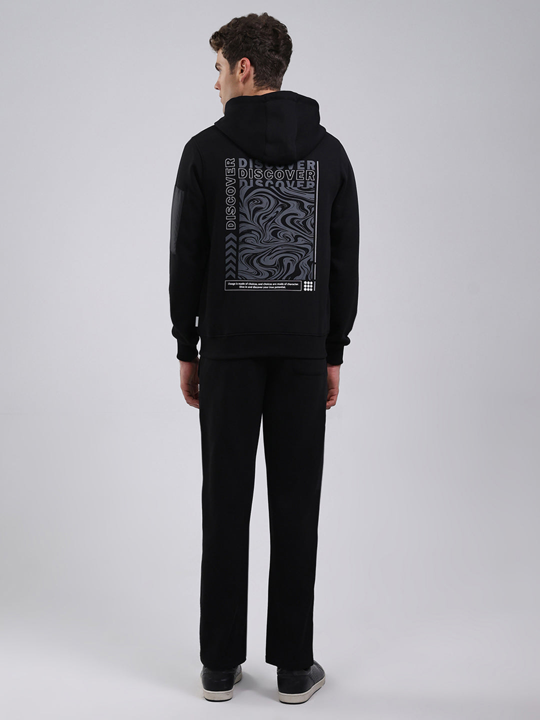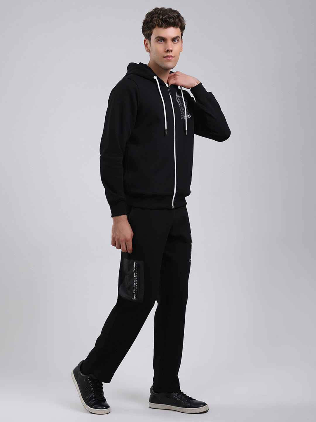 Men Black Printed Round Neck Full Sleeve Winter Tracksuit