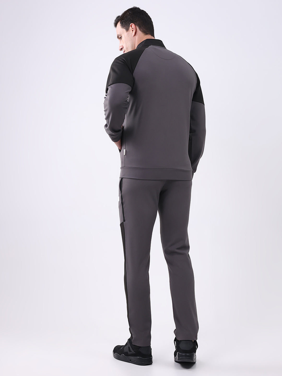 Men Black Solid Mock Neck Full Sleeve Winter Tracksuit