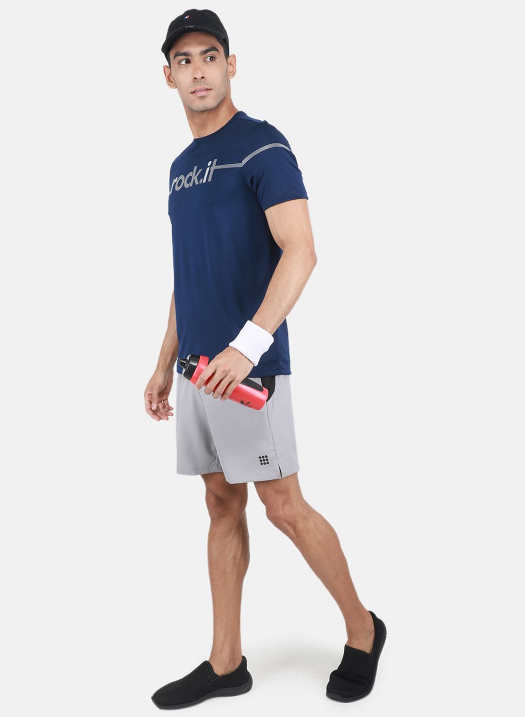Men Blue Printed Round Neck Half Sleeve T-Shirt