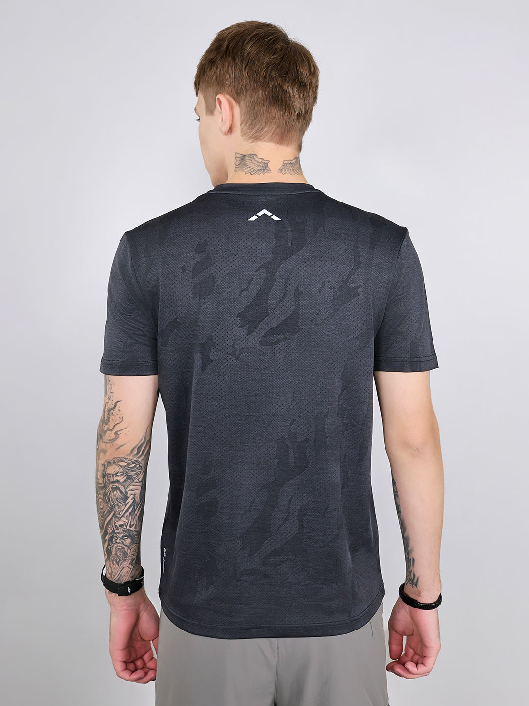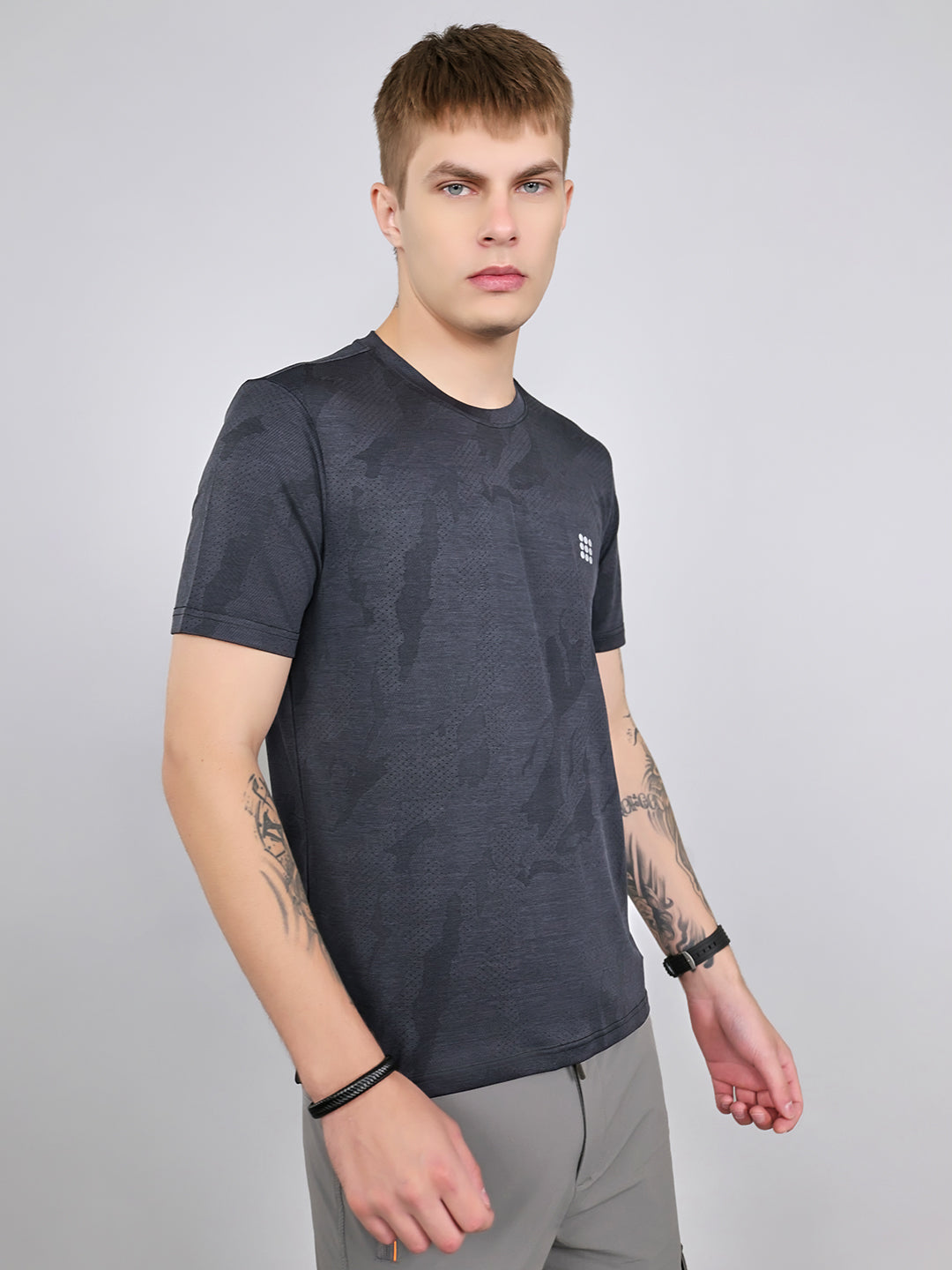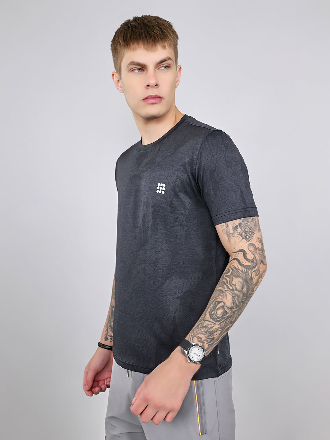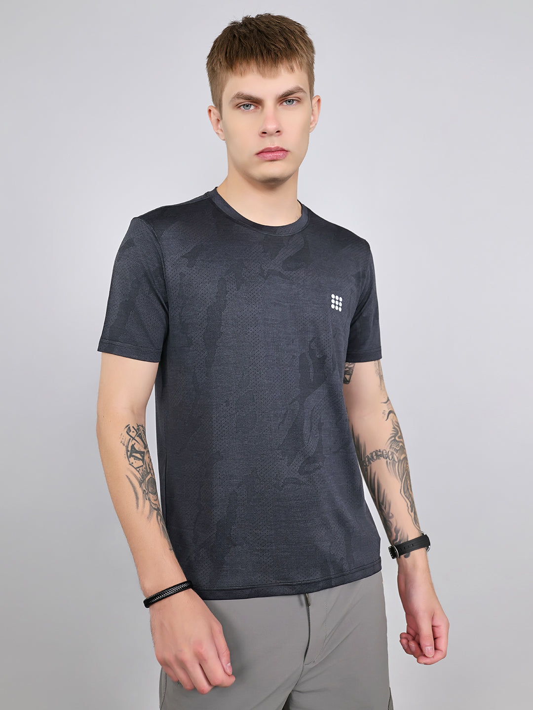 Men Charcoal Solid Round Neck Half Sleeve T-Shirt